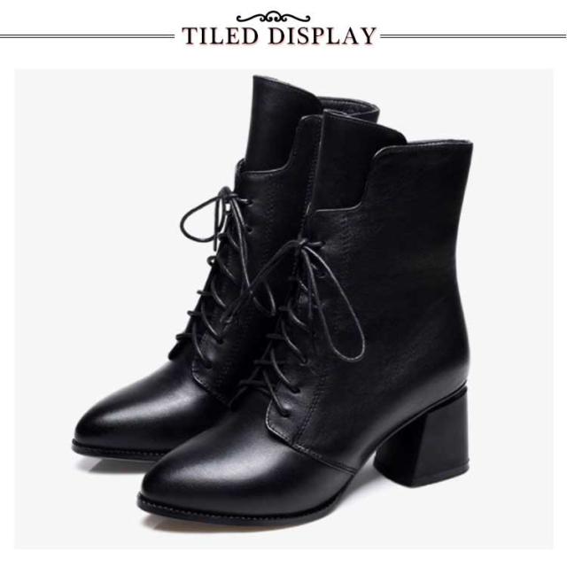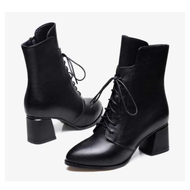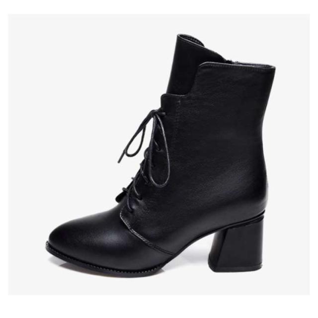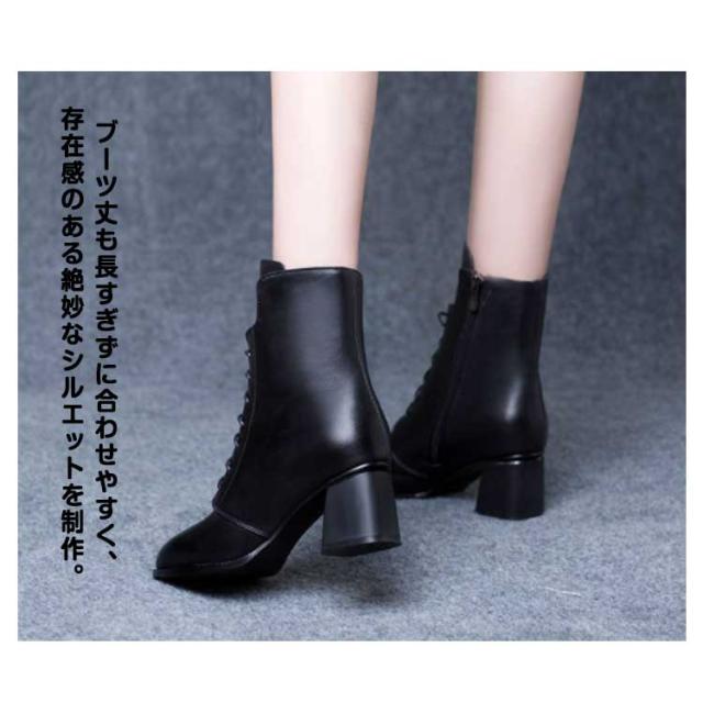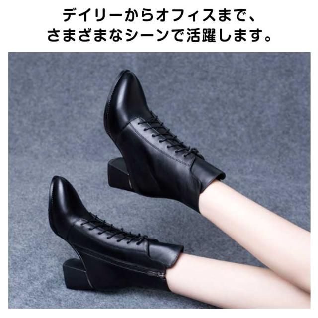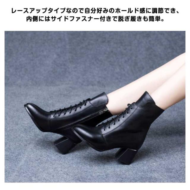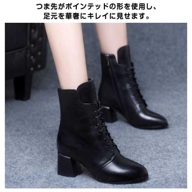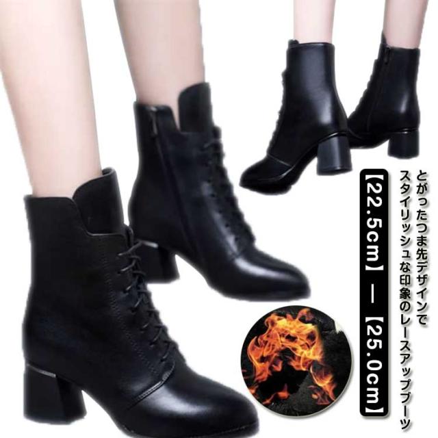 レースアップブーツ ショートブーツ レディース 秋冬 ブーツ レースアップ 編上げ 6cmヒール チャンキーヒール ポインテッドトゥ サイドジップ ファスナー 太ヒール 防寒 ブーツ 裏起毛 暖かい 歩きやすい 履きやすい 黒 大人 カジュアル 30代40代50代60代