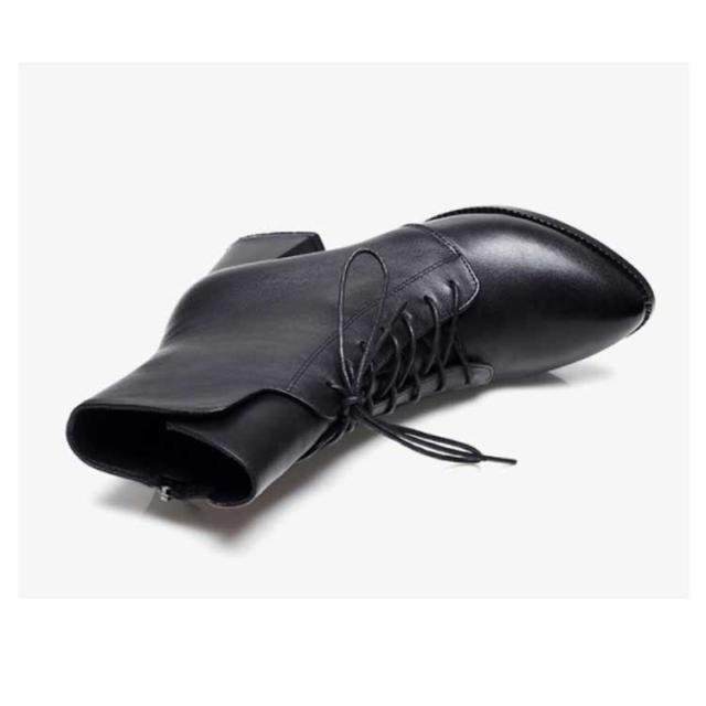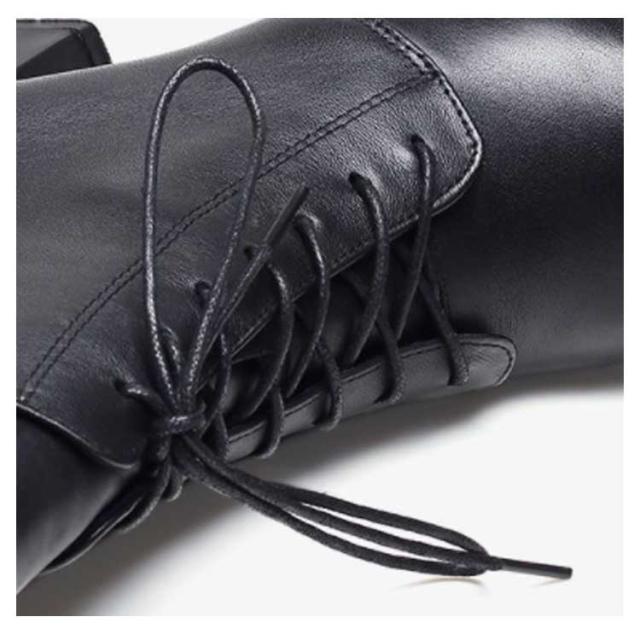 | とがったつま先デザインでスタイリッシュな印象のレースアップブーツ。 つま先がポインテッドの形を使用し、足元を華奢にキレイに見せます。 ブーツ丈も長すぎずに合わせやすく、存在感のある絶妙なシルエットを制作。 裏起毛素材を使用しているので暖かくさせてくれるのも魅力です。(裏起毛なしタイプもあり) レースアップタイプなので自分好みのホールド感に調節でき、内側にはサイドファスナー付きで脱ぎ履きも簡単。 デイリーからオフィスまで、さまざまなシーンで活躍します。 | |