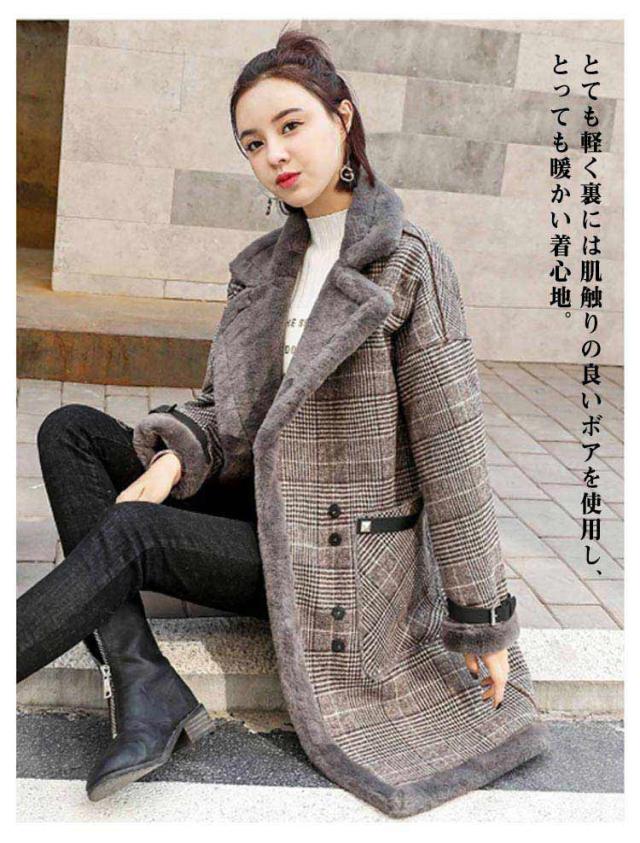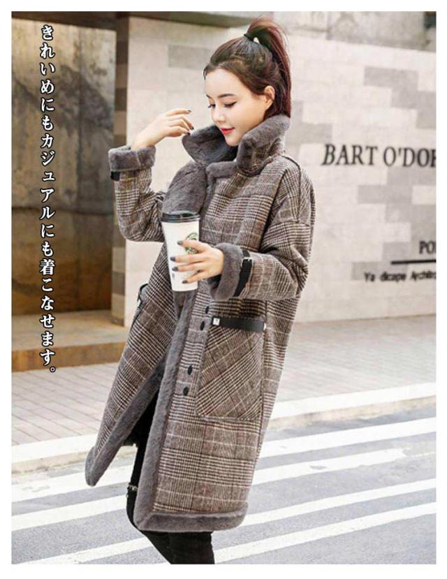 ボアコート チェスターコート チェック コート 裏ボア 厚手 レディース 秋 冬 アウター チェックコート きれいめ ロング ロングコート グレンチェック アウター 暖かい 裏起毛 ポケット付き ボア
