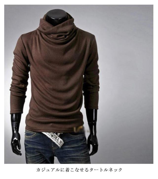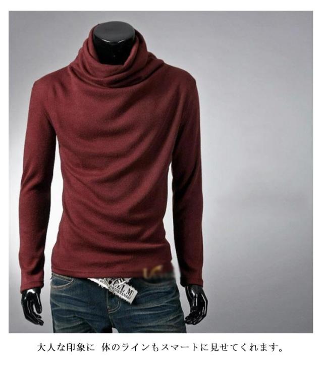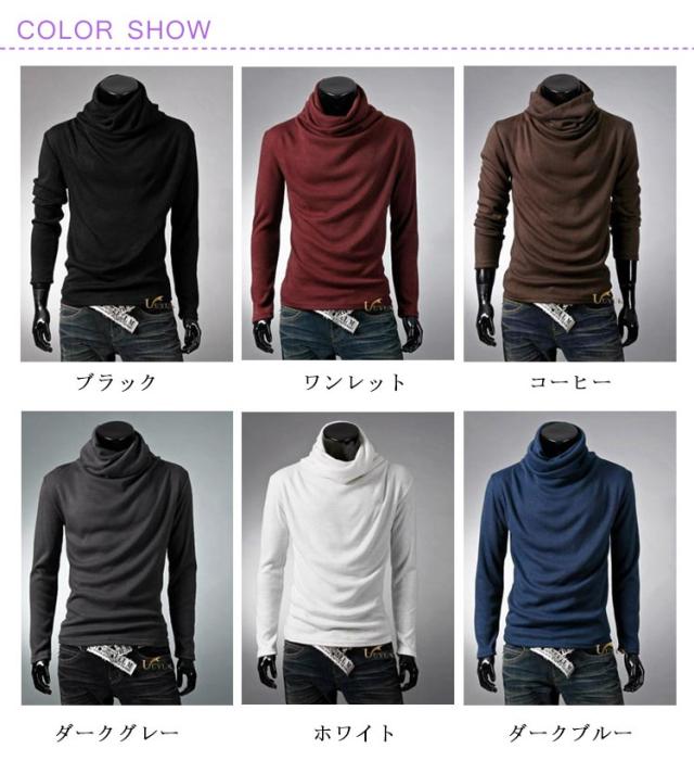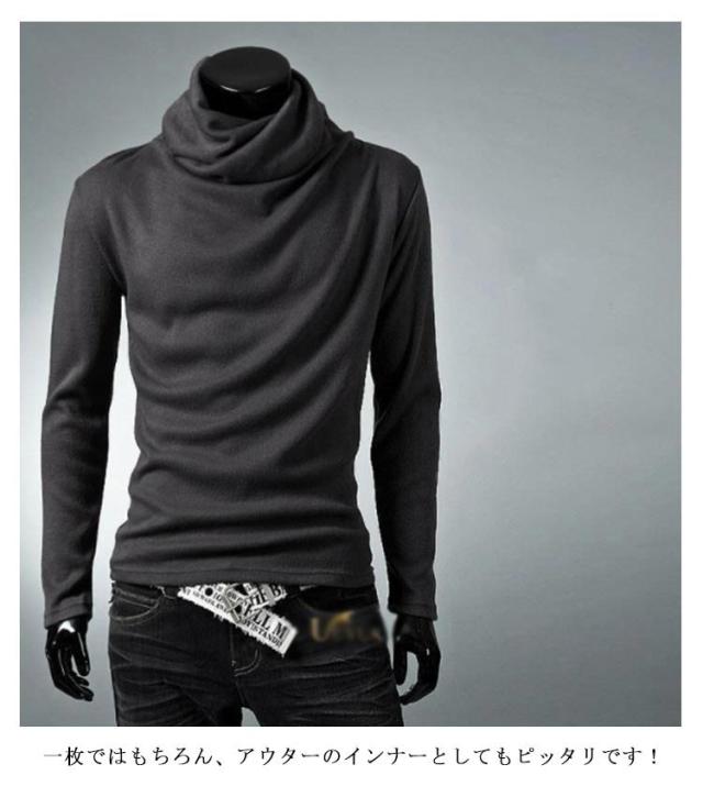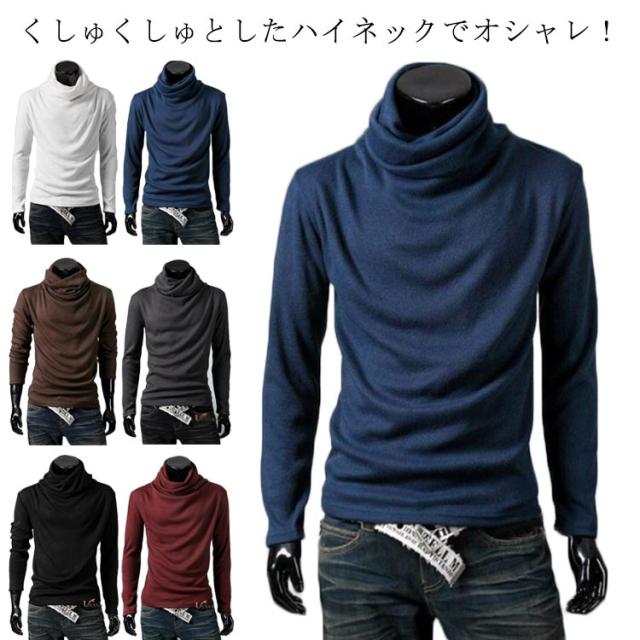 6色×5サイズ ロング カットソー メンズ ハイネック ロンT ロングtシャツ ハイネック タートルネック 長袖 ティーシャツ Tシャツ メンズファッション 春 秋 冬 送料無料