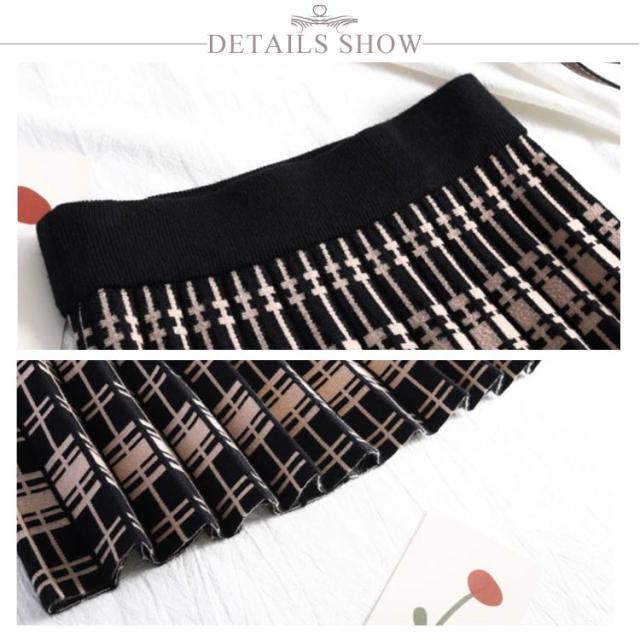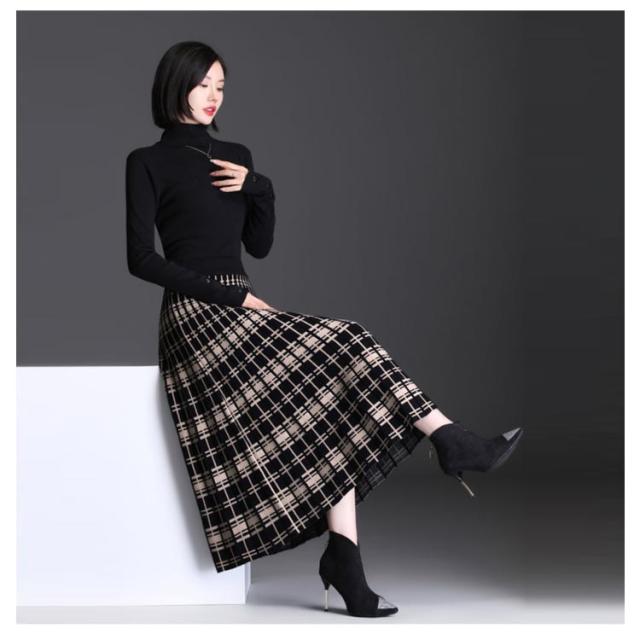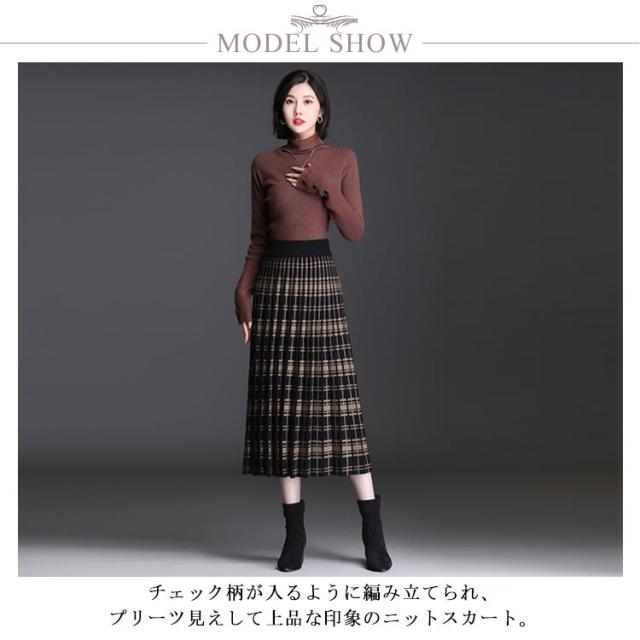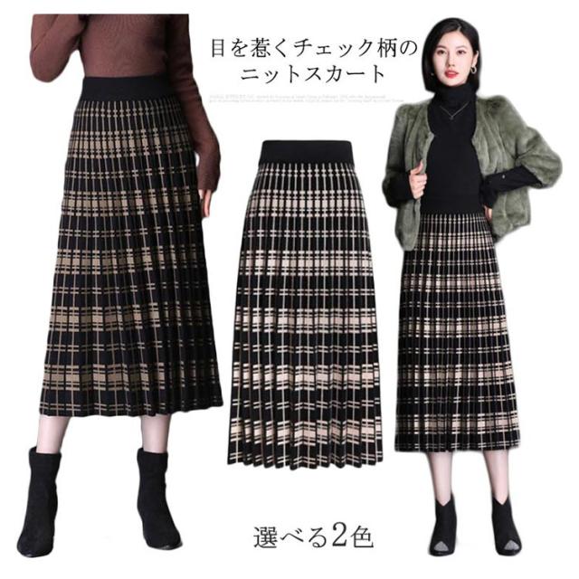 送料無料 ニットスカート プリーツスカート スカート ボトムス レディース ロング ミモレ丈 ニット フレアー プリーツ チェック柄 ウエストゴム 春 秋 冬 Aライン カジュアル フェミニン 上品 きれいめ おしゃれ 可愛い