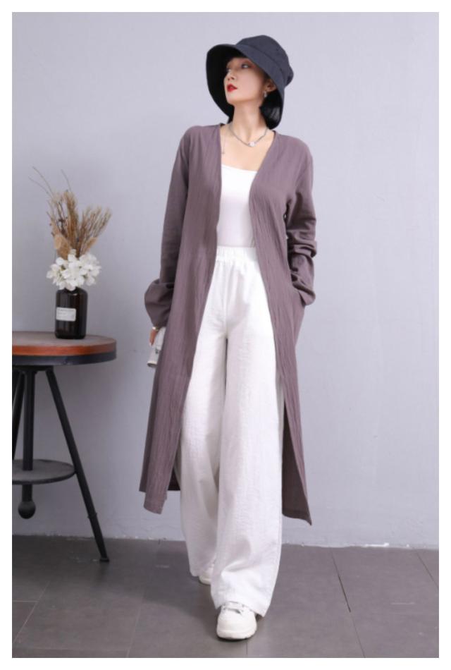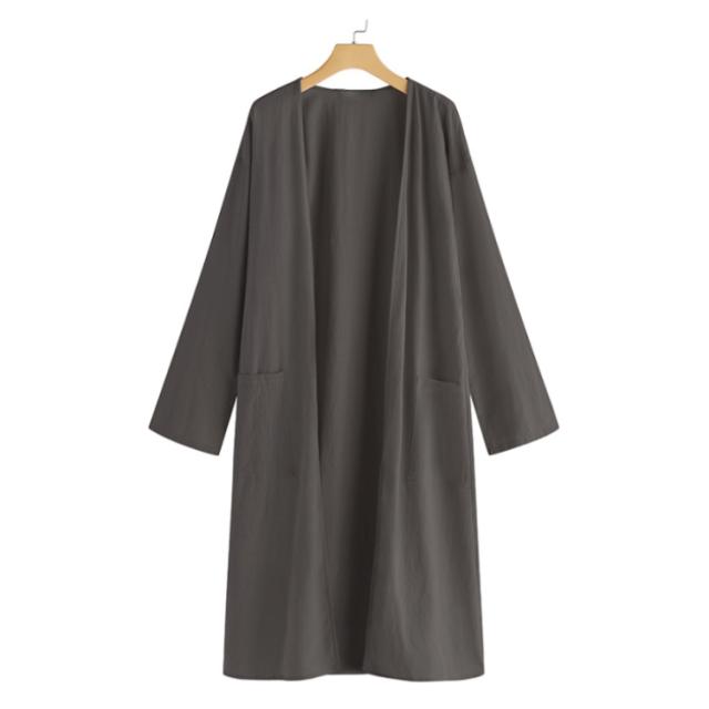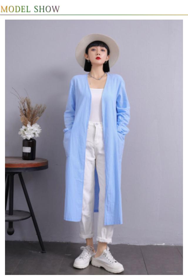 S-5XLサイズ!サマージャケット 送料無料 ロングジャケット トレンチコート 羽織り 上着 コート ジャケット レディース ロング丈 春 アウター ライトアウター 綿麻 無地 体型カバー ゆったり ノーカラー サマーカーディガン ポケット付き 無地 大きサイズ カジュアル 通勤 OL