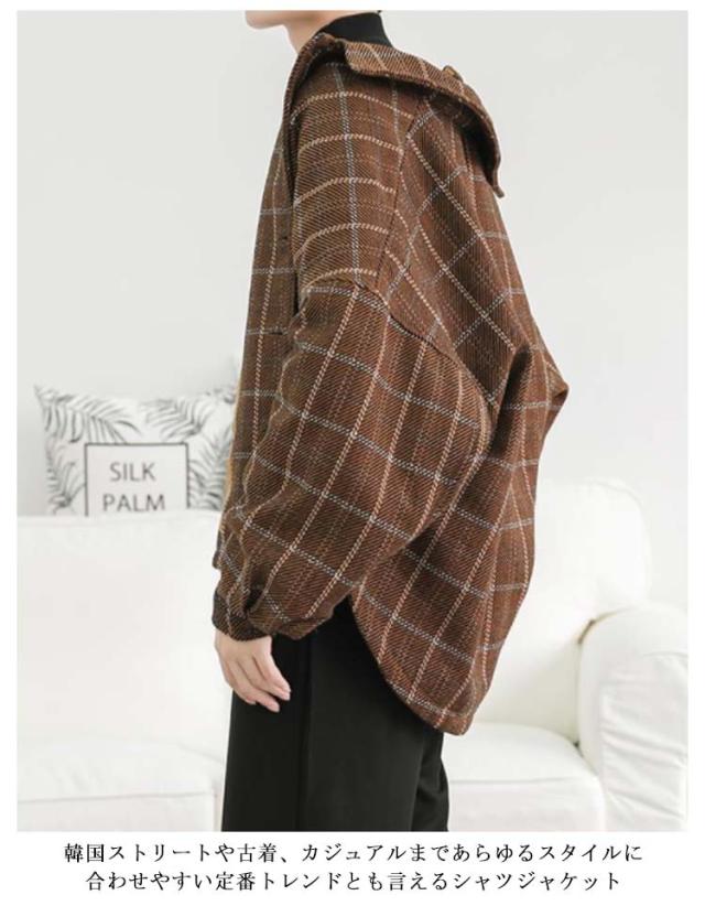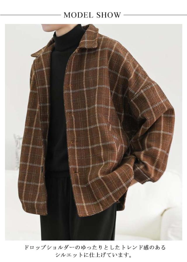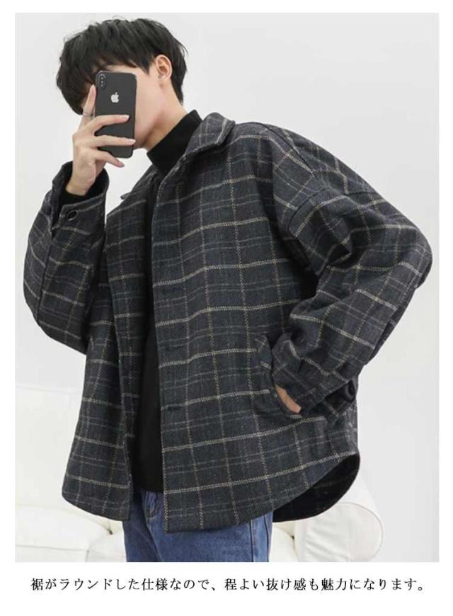 【送料無料】シャツジャケット チェック柄 メンズ ジャケット 厚手 裏地付き レトロ 春 秋 冬 アウター コート オーバーサイズ 韓国ファッション カジュアル 通勤 ストリート 大きいサイズ ビッグシルエット M L XL