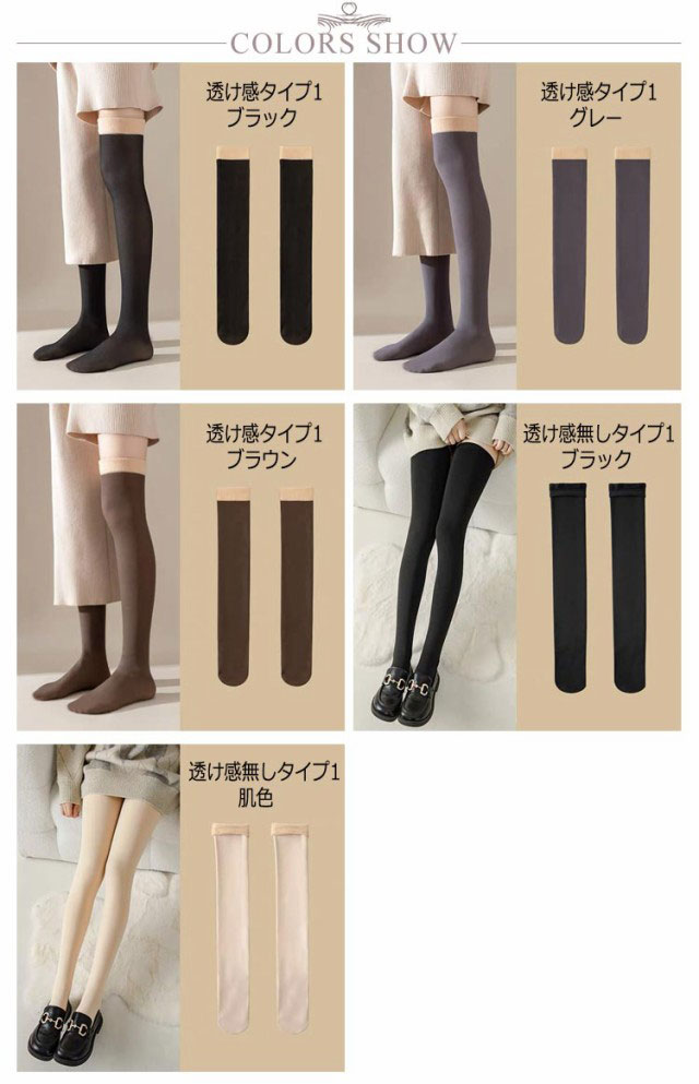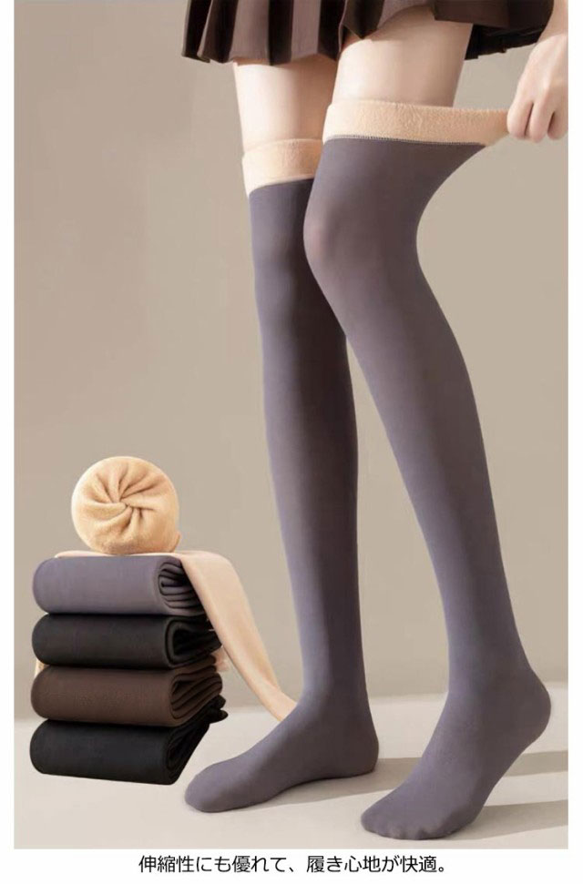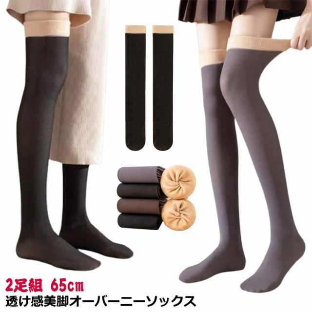 | 2足組 65cm 透け感美脚オーバーニーソックス しっかり厚手なのに透け感で足が細く見える 裏地はもこもこ断熱繊維で柔らかく、とっても温かい ふんわり柔らかな裏起毛素材が肌触りがよくて、履き心地が抜群 伸縮性にも優れて、履き心地が快適 ほどよい着圧で引き締めて、足がきれいに見える | |