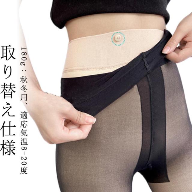 | 180g:秋冬用、適応気温8-20度 ストキング風フェイクタイツ 肌色の厚手生地と肌色や黒色などの透ける生地の二重構造で 厚手なのに、まるでシアーなタイツを履いているように 見える、驚くほどソフトな履き心地と並外れた暖かい 腰周りから足先までをしっかり温めてくれるので、冬でも爽やかなワンピースなどを楽しめる 着圧タイプで程よく脚を引き締めてくれるので細く長く綺麗に魅せます 3D立体仕様なので、お尻をすっぽり包み込んでヒップアップ 表のストキングを外せるので、耐久性がありお手元の違うカラーのストキングも楽しめる 爪先まで裏起毛デザインでよく冷えがちの足を温める 丈夫な糸を使ってノンラン編みで網目が細くて、糸が切れても伝線しにくい | |