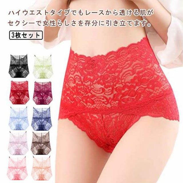 3枚セット 選べる10色×5サイズ レースショーツ レディース 総レース ショーツ シームレスショーツ ハイウエストレースショーツ ランジェリー 下着 シースルー セクシーショーツ 花柄 柔らか 透け感 ひびかない インナー 送料無料