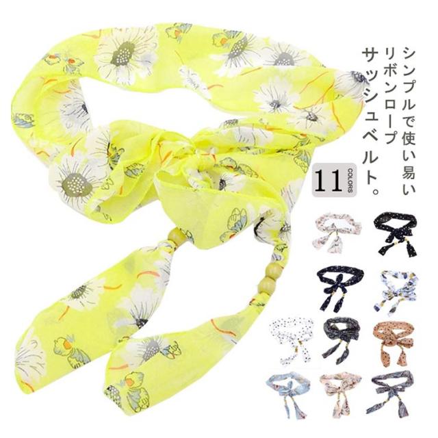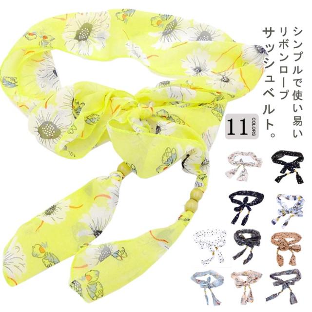 選べる11色 ベルト レディース リボンロープ ウエストマーク 飾りベルト 太ベルト スカーフ柄 シフォン ウエストマーク リボン 紐 ワンピース パンツ お洒落 プレゼント 贈り物 シンプル