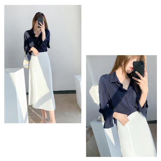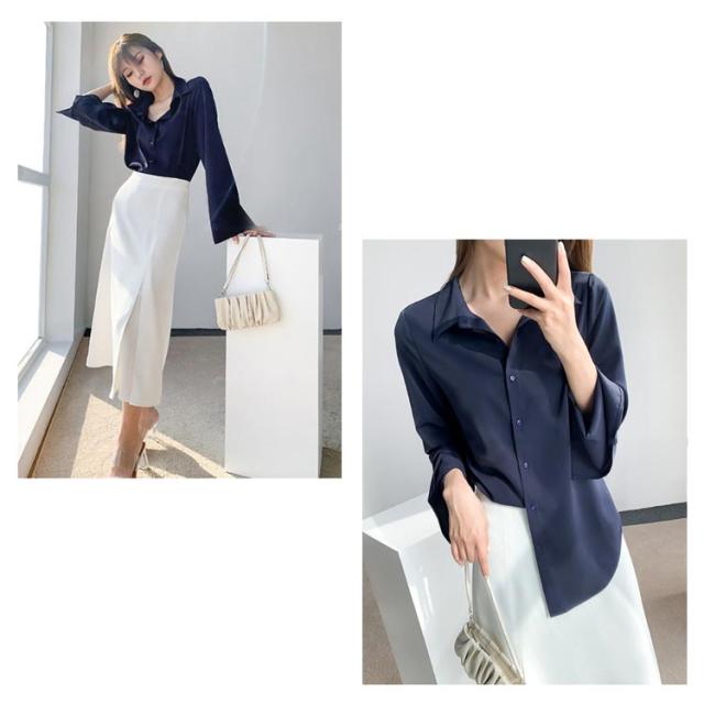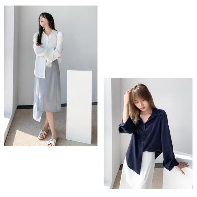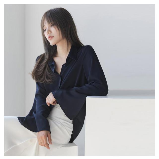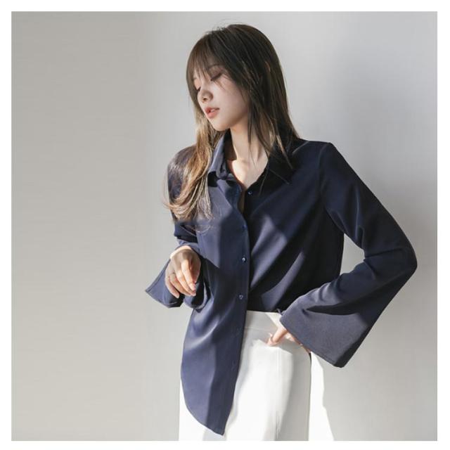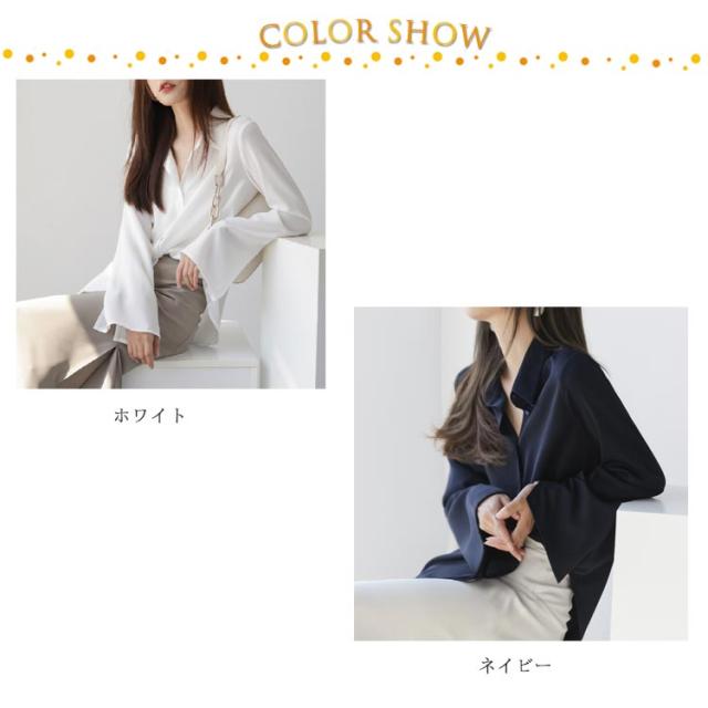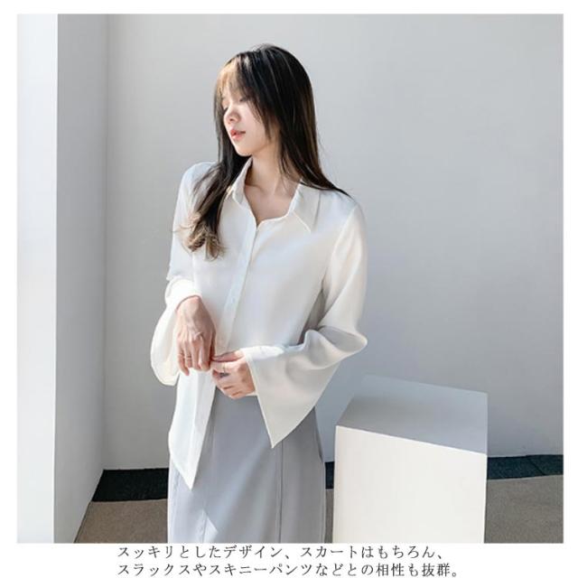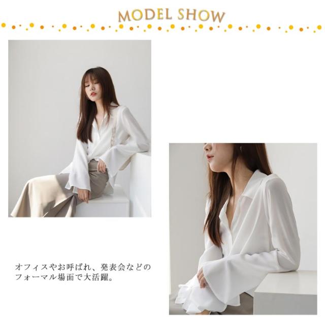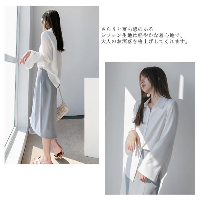 ブラウス フレアスリーブ 袖丈スリット トップス レディース シフォンブラウス とろみ 袖フレア シャツブラウス 送料無料 春新作 秋 ビジネス オフィス 抜け感