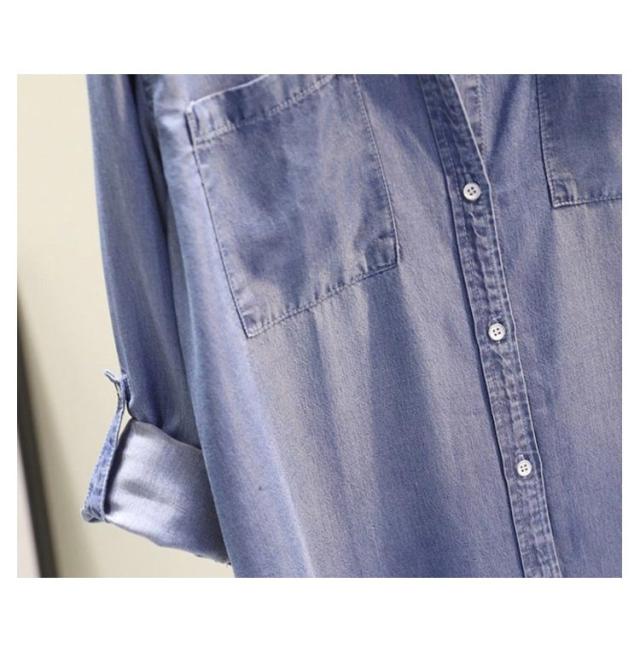 M-5XL ロングシャツ シャツ ブラウス チュニックシャツ 長袖 デニムシャツ レディース シャツワンピース ヘムライン 送料無料 ロールアップ 大きいサイズ ロング丈 長袖シャツ カジュアルシャツ 春 夏 秋