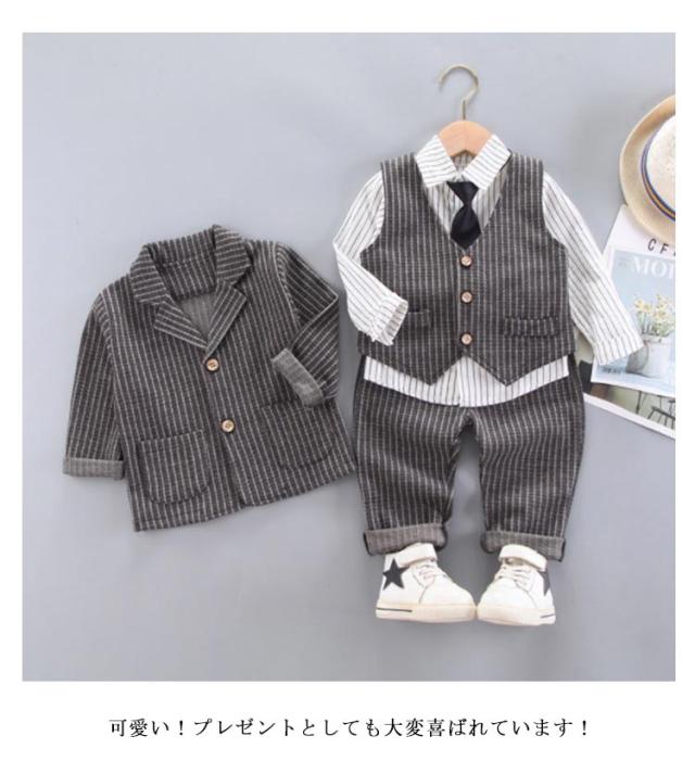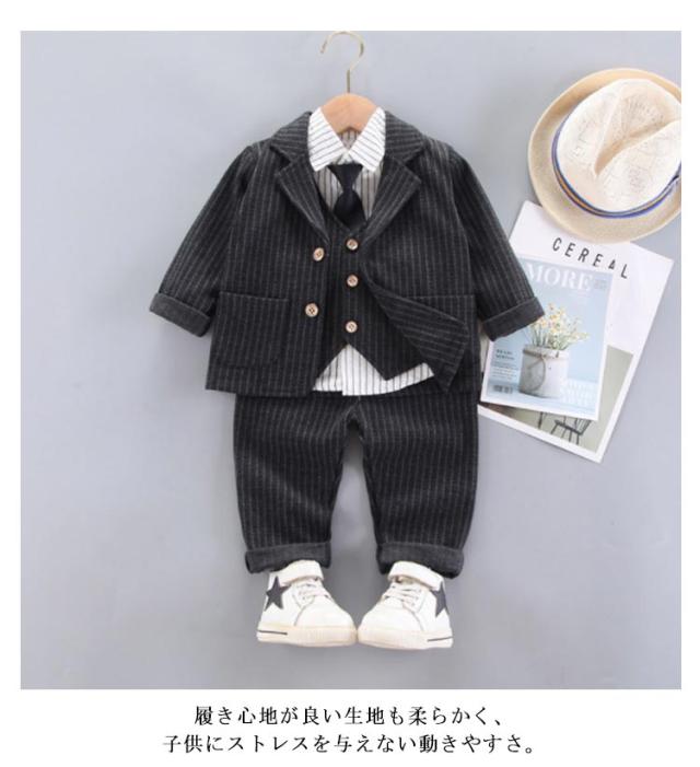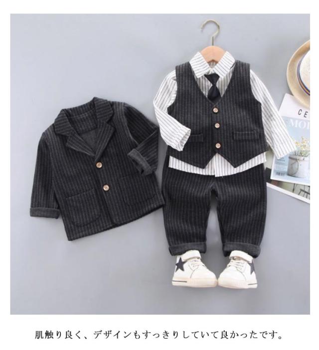 ベビー スーツ 男の子 4点セット フォーマル 子供 スーツ キッズ 赤ちゃん ネクタイ付き 入園式 こども 七五三 結婚式 おしゃれ ジャケット ズボン シャツ ベスト 保育園 73 80 90 100 110cm 送料無料