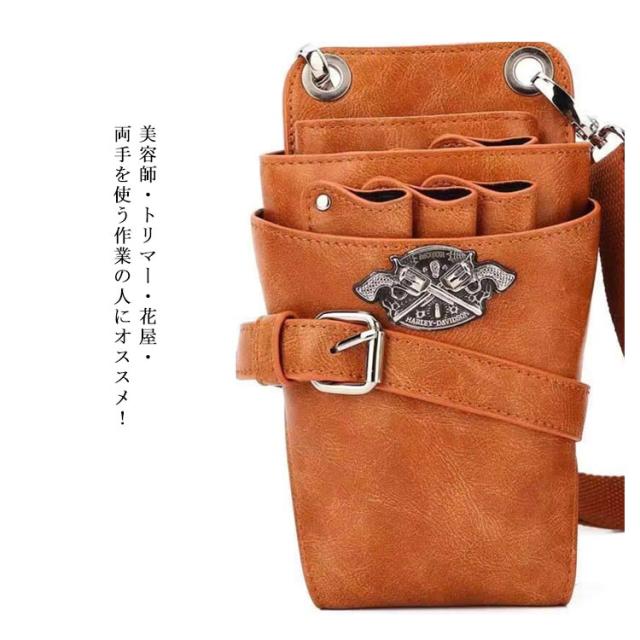 シザーケース プロ仕様 トリマー 美容師 フラワーショップ フローリスト 花屋 園芸 ヴィンテージ おしゃれ シザーバッグ ビンテージ ウエストポーチ 7丁入 PUレザー 業務用 ポシェット サロン 送料無料