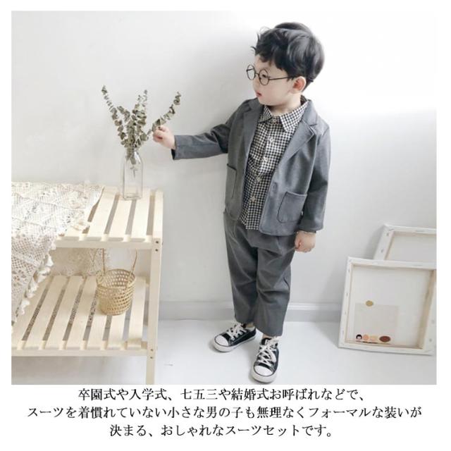 | 韓国風おしゃれなキッズスーツセット。 ジャケットとチェックシャツとズボンの3点セットです。 卒園式や入学式、七五三や結婚式お呼ばれなどで、スーツを着慣れていない小さな男の子も無理なくフォーマルな装いが決まる、おしゃれなスーツセットです。 やんちゃキッズも紳士に変身! ベビーからキッズ入園式や卒園式入学式、七五三などフォーマルシーン彩るオシャレなスーツ。 | |