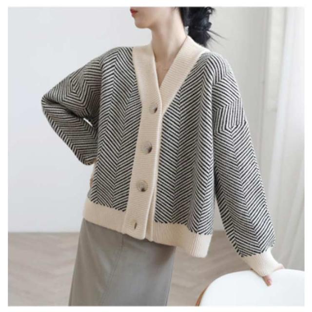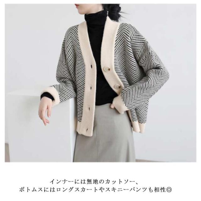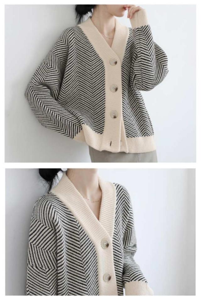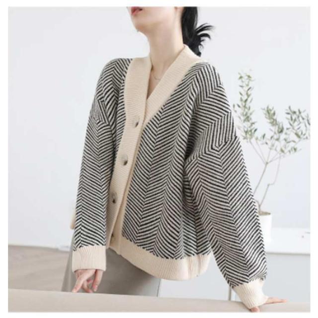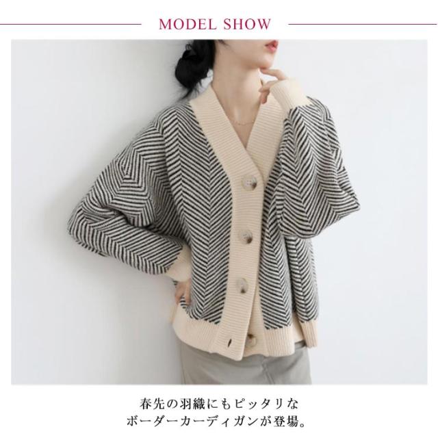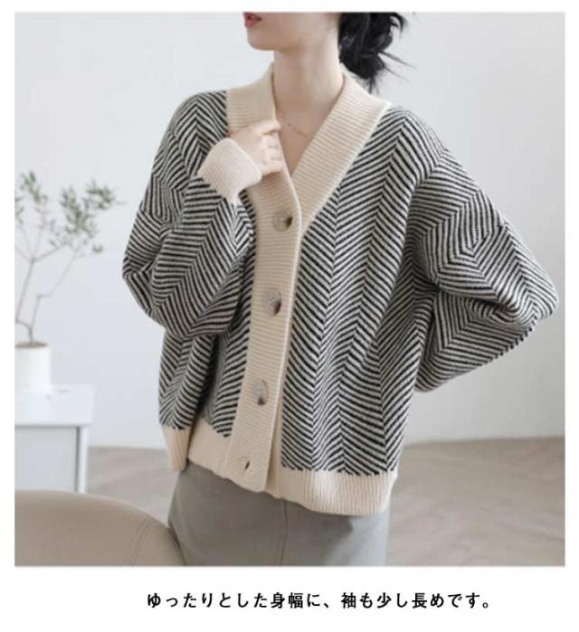 カーディガン レディース ニット 春 シンプル ボタン Vネック カーディガン ニット/レディース 送料無料 カーディガン レディース セーター 長袖 ニット しっとり ストレッチ ボーダー ゆったり