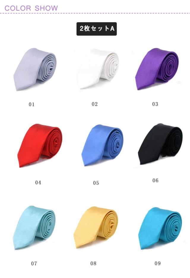 2枚セット 選べる40色 ナロータイ 無地 型押し 細いネクタイ スリムタイ 細い ネクタイ メンズ レディース レッド 赤 ブラック 黒 ピンク ゴールド ブラウン 韓国 アメカジ系 サロン系 キレイめ系 送料無料
