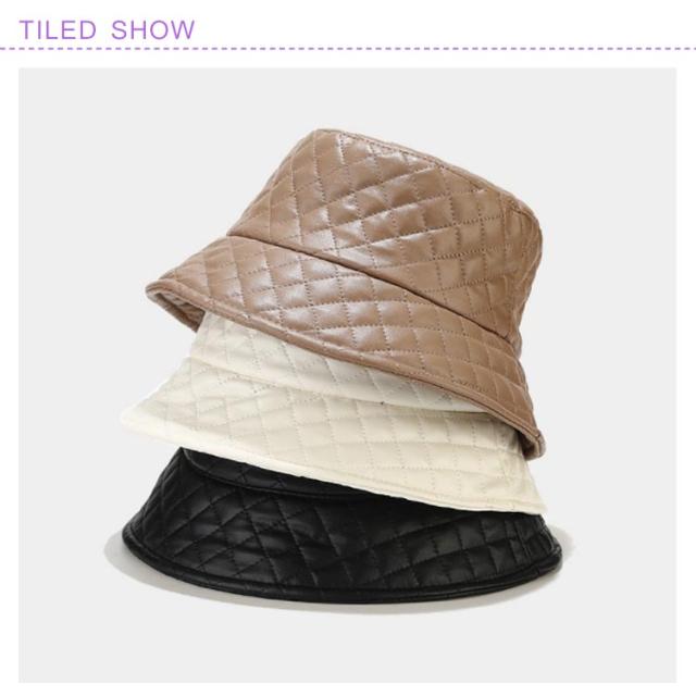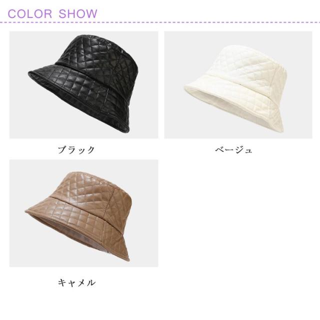 バケットハット メンズ レディース 春 秋冬 帽子 ハット フェイクレザー 中綿 キルティング 格子柄 女性用帽子 完全遮光 紫外線対策 サイズ調整可能