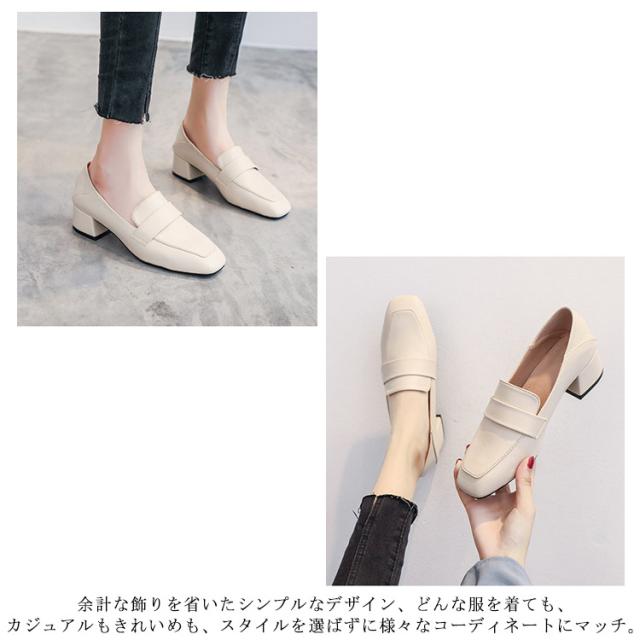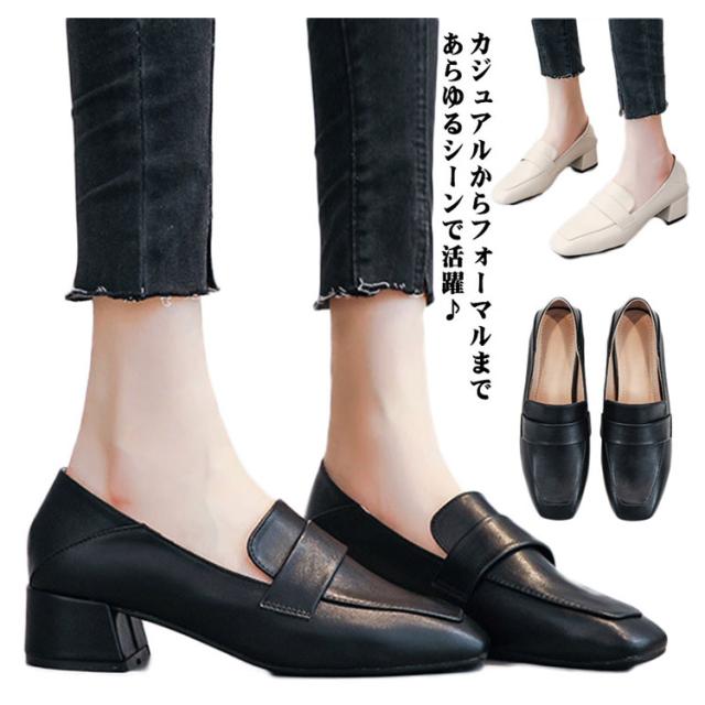 踵が踏める 2way ローファー パンプス レディース 靴 スリッポン カジュアル フォーマル 通勤 スクエアトゥ 太ヒール 歩きやすい 痛くない 学生 卒業式 大きいサイズ 履きやすい 立ち仕事 オフィス
