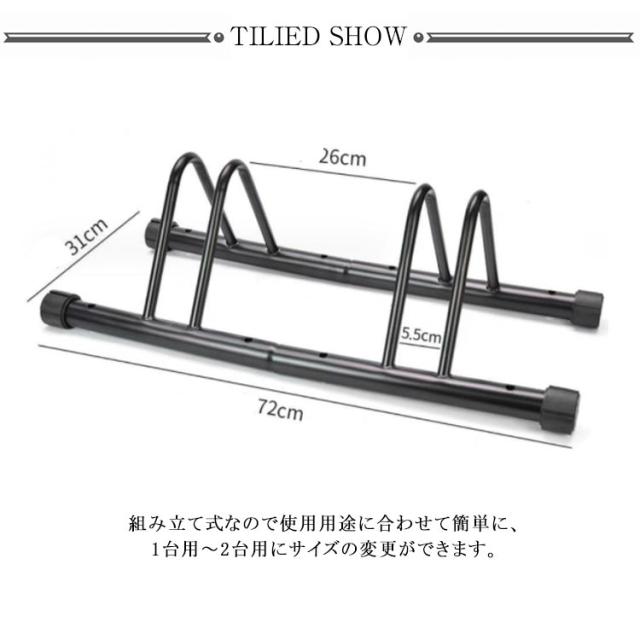 | 組立式 2台用 タイヤを差し込むだけ 前輪タイヤを差し込むだけで簡単駐輪。 組み立て式なので使用用途に合わせて簡単に、 1台用〜2台用にサイズの変更ができます。 | |