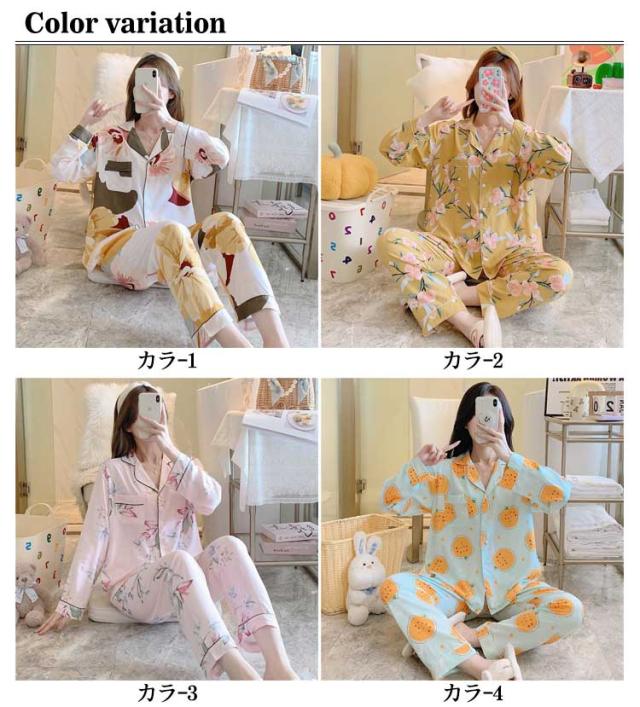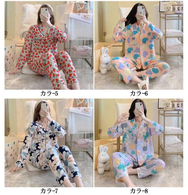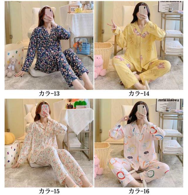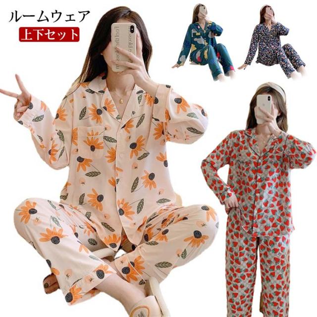 ルームウェア レディース セットアップ ナイトウェア パジャマ 上下セット お洒落 可愛い 長袖 春秋 寝間着 部屋着 大きいサイズ 女性用 花柄 送料無料