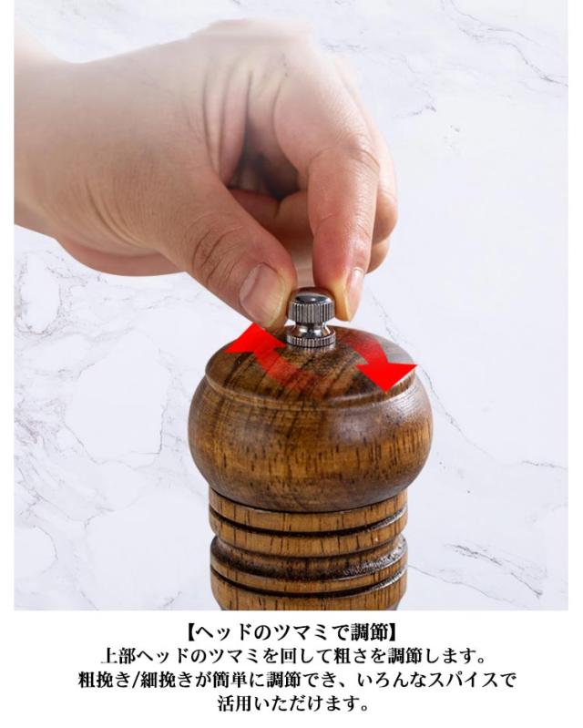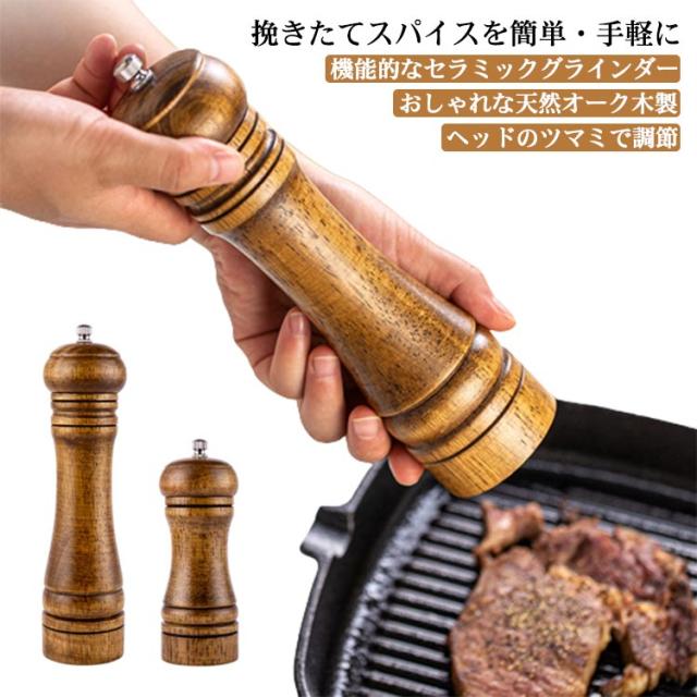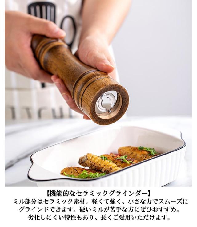 ペッパーミル 木製 ソルト ペッパー ミル スパイスミル セラミック刃 岩塩 コショウ 胡椒 香辛料 胡椒挽き 塩挽き マルチミル 粗さ調整 こしょう 粗挽き 細挽き 調理器具 手動 調味料挽き 挽きたて 胡椒ひき ナチュラル 使いやすい 飲食店 自宅 北欧 送料無料