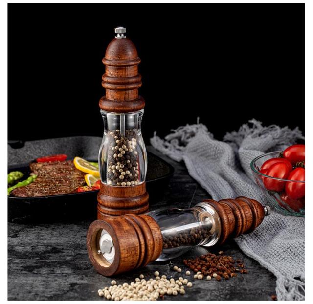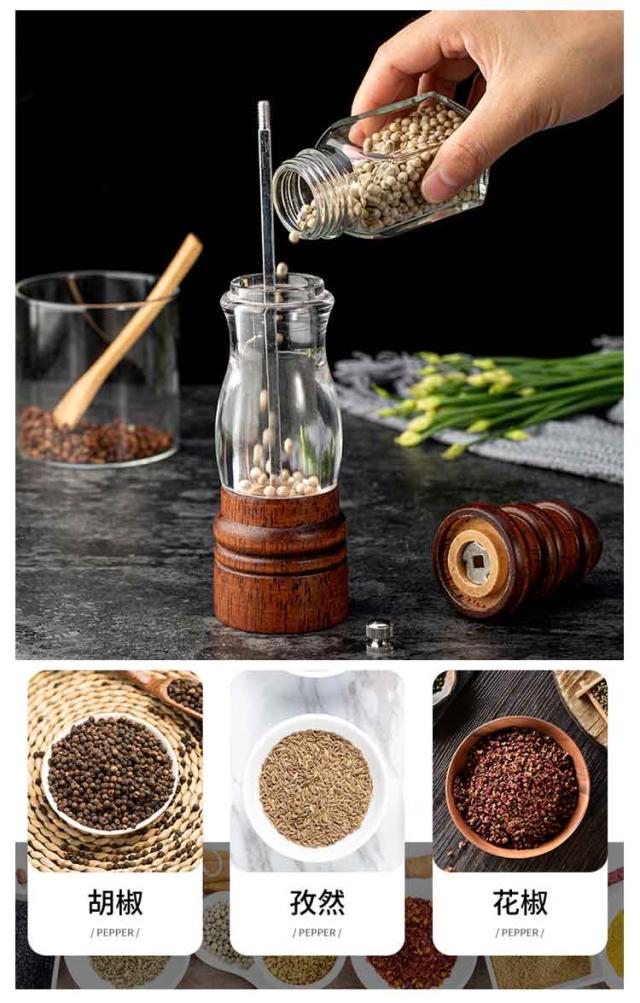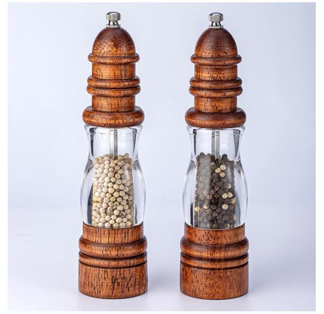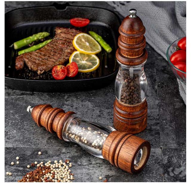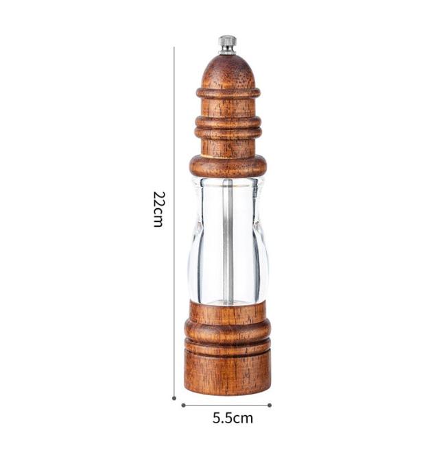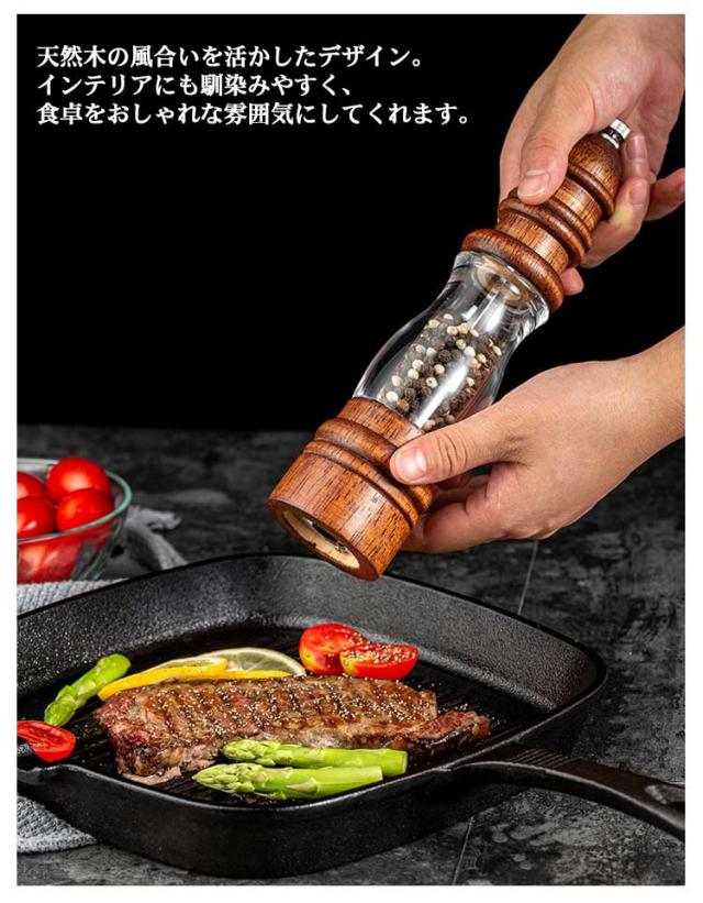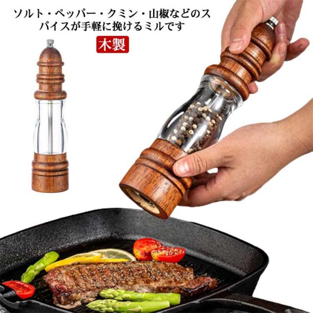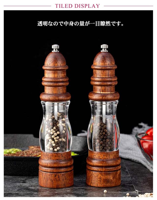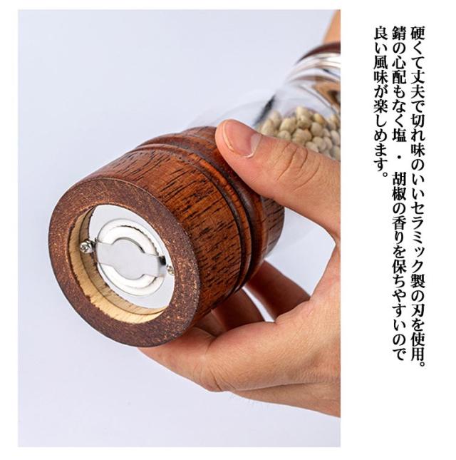 木製 ペッパーミル 手動 ソルトミル ペッパー スパイスミル 透明 胡椒挽き 塩挽き 岩塩 コショウ 胡椒 香辛料 調味料挽き セラミック刃 粗さ調整 粗挽き 細挽き 調理器具 こしょう挽き 胡椒ひき 挽きたて 使いやすい ナチュラル 飲食店 自宅 北欧 送料無料