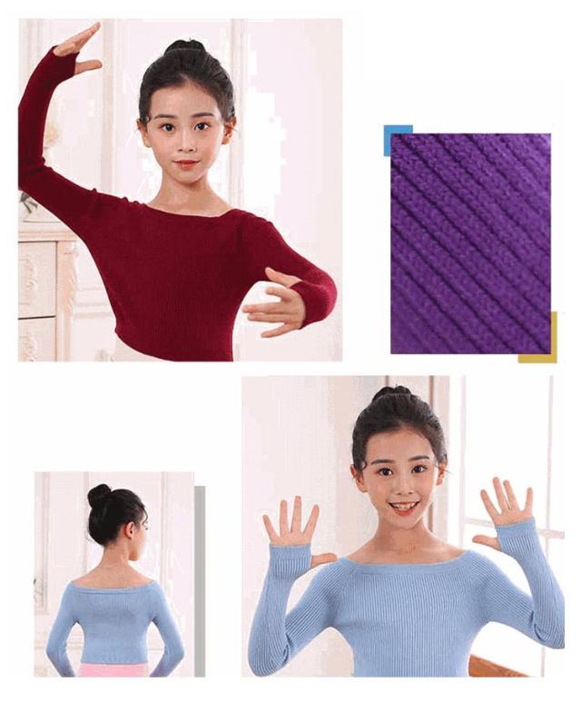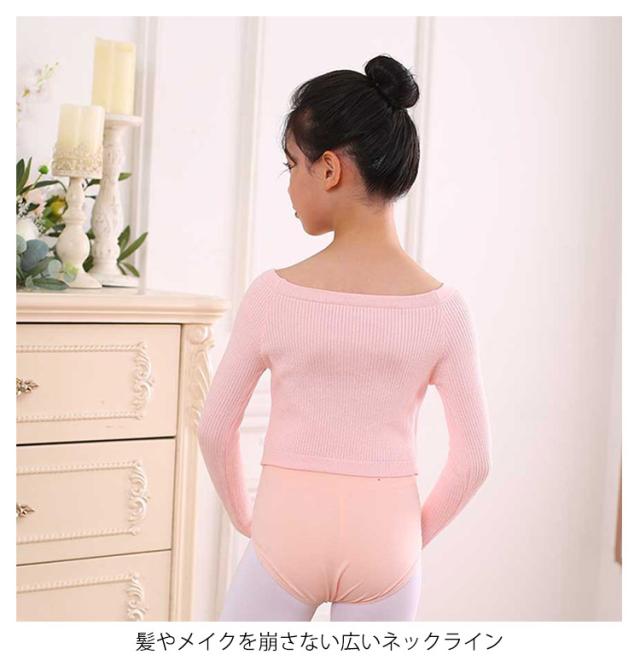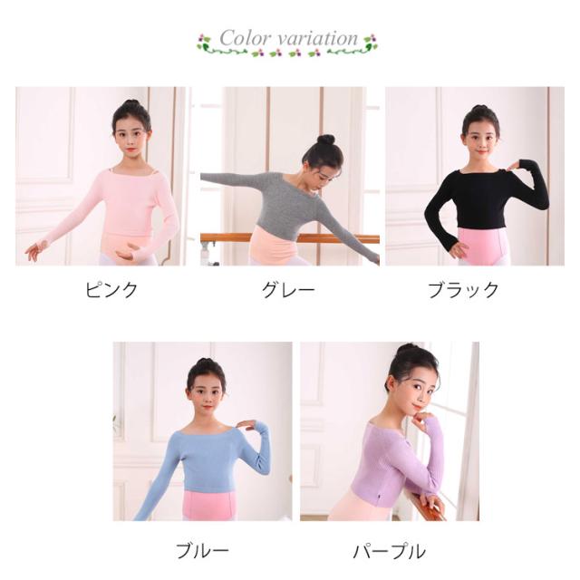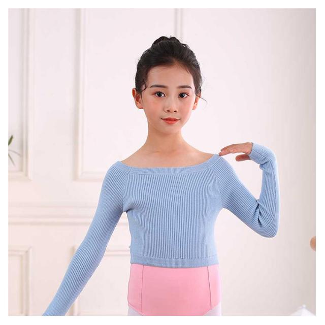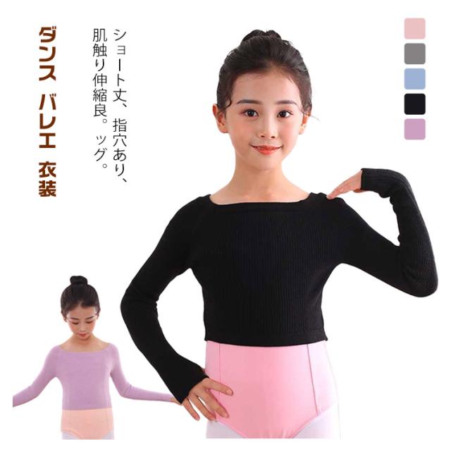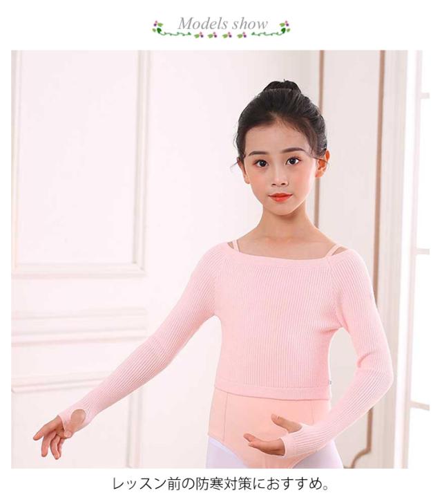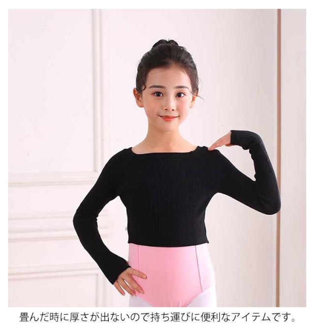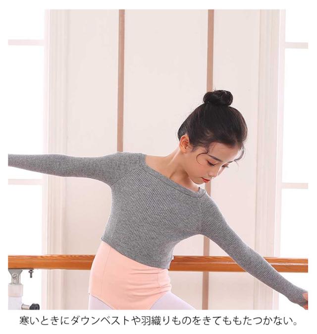 ダンス バレエ 衣装 キッズ 子供用 練習着 ボートネック ニットトップス 指穴 長袖 リブトップス リブニット レッスン 防寒 温か 女の子 ジュニア キッズ クロップド丈 フィットネス セーター 子供 バレエ用品