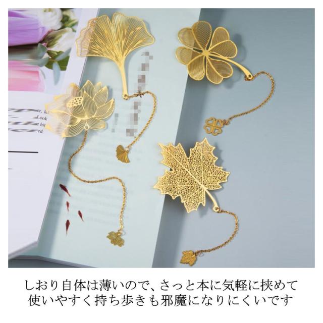 | 精致である 葉脈デザインのしおり4点セット。 細かいところまで丁寧に作られていて、金色の木の葉しおりを製作いたしました。 金属とは思えない滑らかさ、細かい細工など。 しおり自体は薄いので、さっと本に気軽に挟めて使いやすく持ち歩きも邪魔になりにくいです。 本に挟んでも膨らんだりする心配もなくスタイリッシュにお使いいただけます。 家族、友達、恋人へのプレゼントのほか、誕生日プレゼント、先生の日プレゼント、卒業プレゼント、クリスマスプレゼント、お正月プレゼントとしてもお使いいただけます。 | |