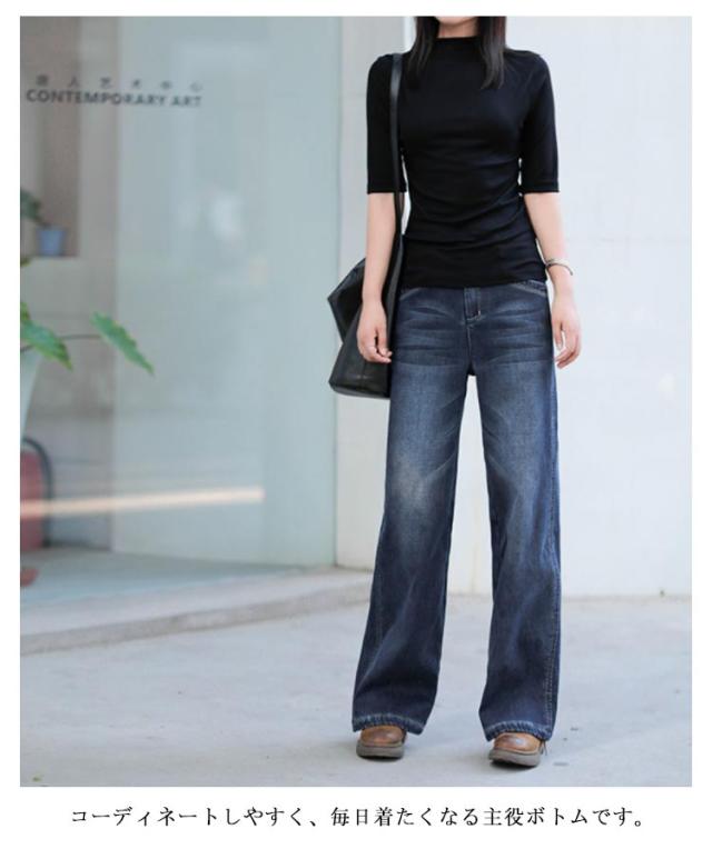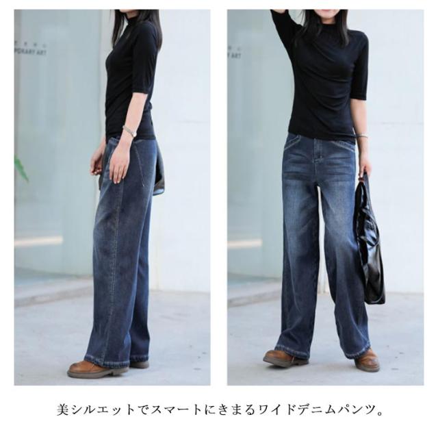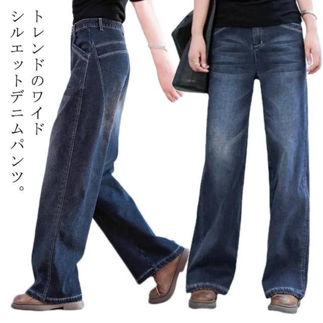 ワイドパンツ デニムパンツ レディース ロングパンツ ジーンズ ガウチョパンツ 体型カバー 大きいサイズ 春 秋 冬 送料無料 着痩せ 美脚 ゆったり 上品 きれいめ 20代 30代 40代 50代