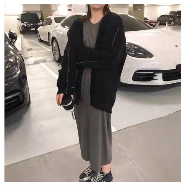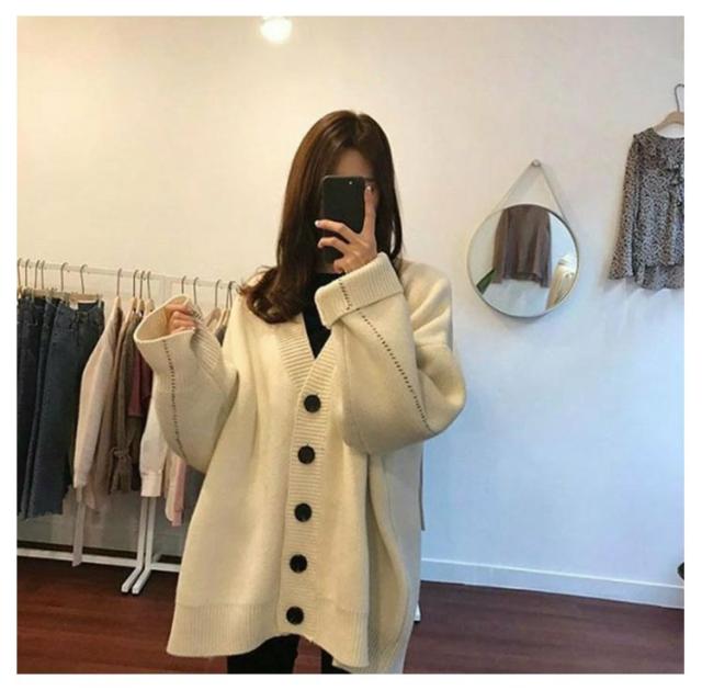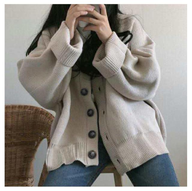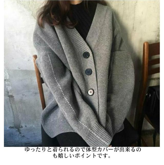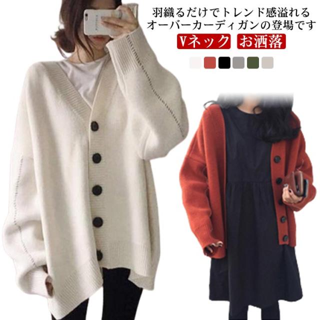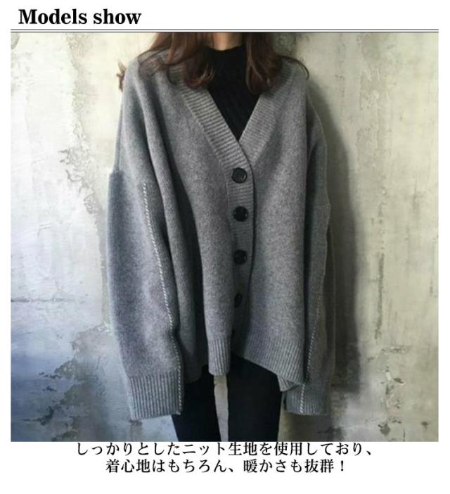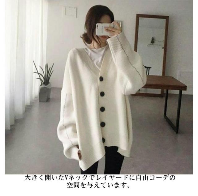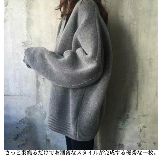 レディース カーディガン 厚手 無地 前開き 羽織り ゆったり オーバーサイズ 体型カバー 可愛い 長袖 Vネック お洒落 カジュアル 普段着 春秋 アウター 送料無料