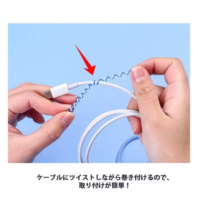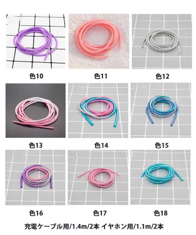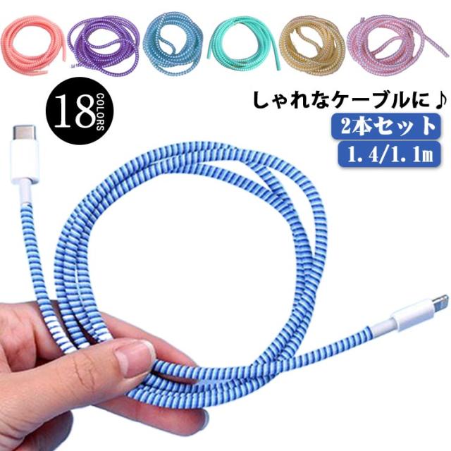 ロング 充電ケーブル カバー USBケーブル 保護プロテクター ケーブルカバー カール カバー イヤホン 2本セット 1.1m 1.4m 断線防止 折り防止 汚れ防止 配線 保護 螺旋 スパイラル スマートフォン PC パソコン カラフル かわいい 送料無料