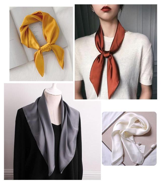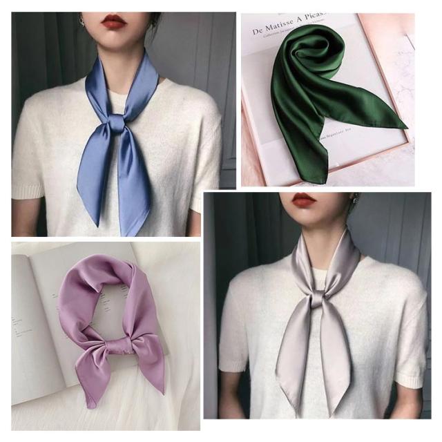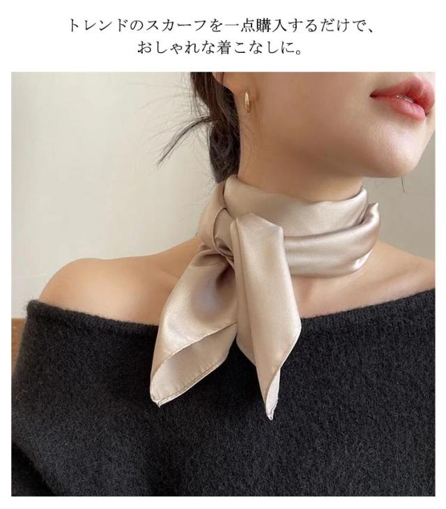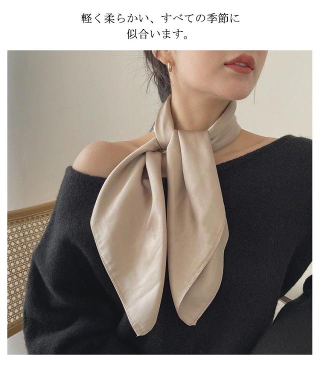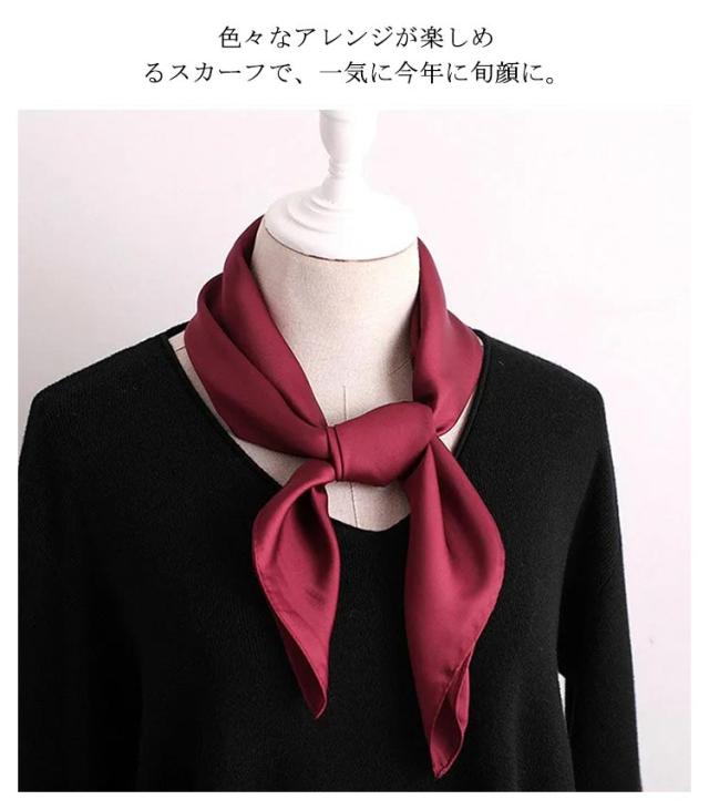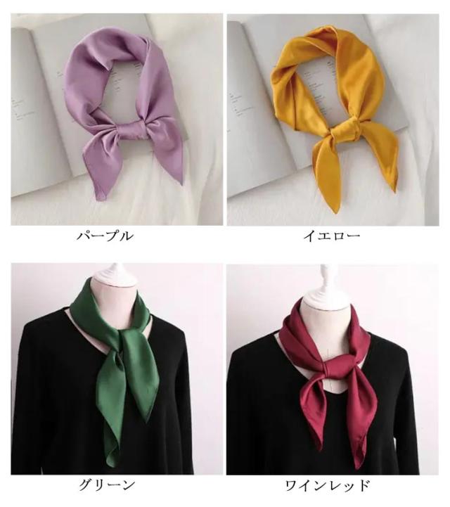 スカーフ レディース 正方形 無地 ネッカチーフ レディース バッグ飾り 送料無料 シルク調 ハンカチ バッグチャーム 70*70cm ヘアアクセサリー オフィス 通勤 雑貨 小物 お洒落 母の日 プレゼント ギフト