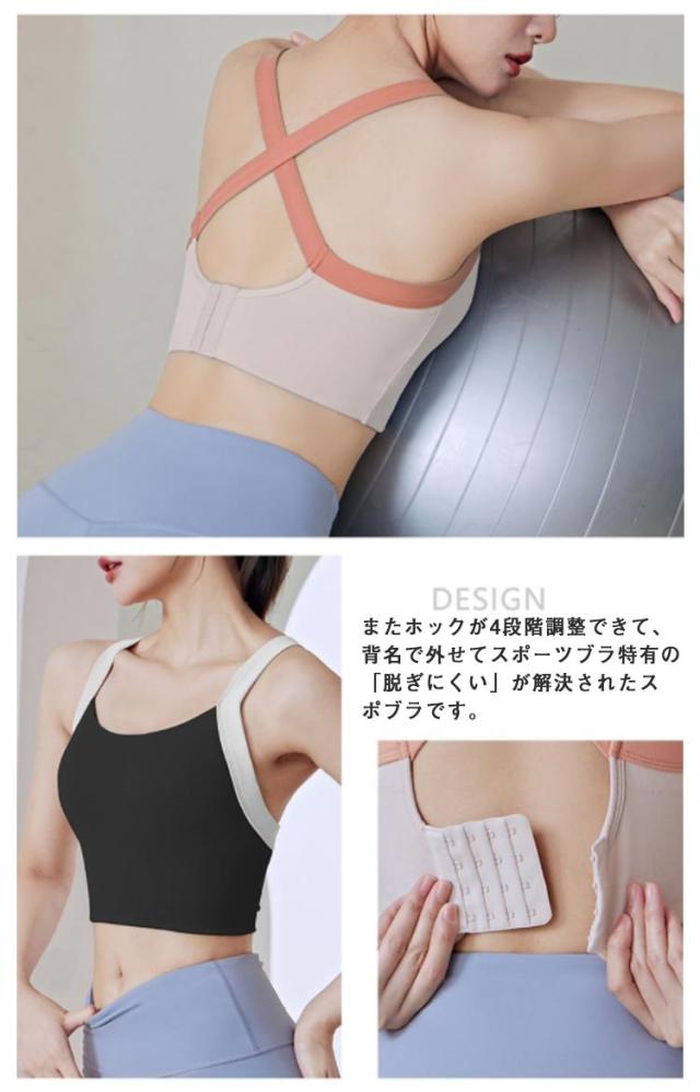 | ヨガ&フィットネスなどのスポーツに快適にお使いいただけるスポーツブラです。 大きめのUネックは、運動中でも締め付け感が無く、汗染みも気になりません。 アンダーを幅広にし、運動中でもしっかり固定してホールド感があります。 エアロビクス、ダンスなどの激しい動きにもぴったりフィットし、ノンワイヤーだから汗ばむシーズンにはデイリーにも大活躍。 吸汗速乾機能があるストレッチ素材を採用し、機能性にもとても優れました。 またホックが4段階調整できて、背名で外せてスポーツブラ特有の「脱ぎにくい」が解決されたスポブラです。 | |