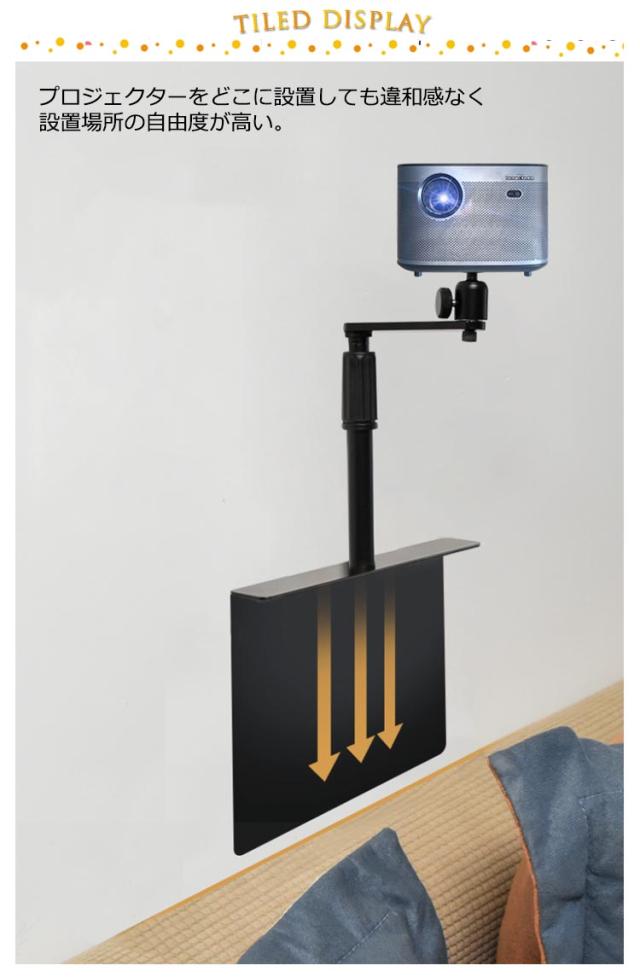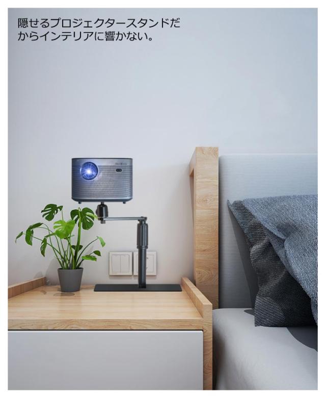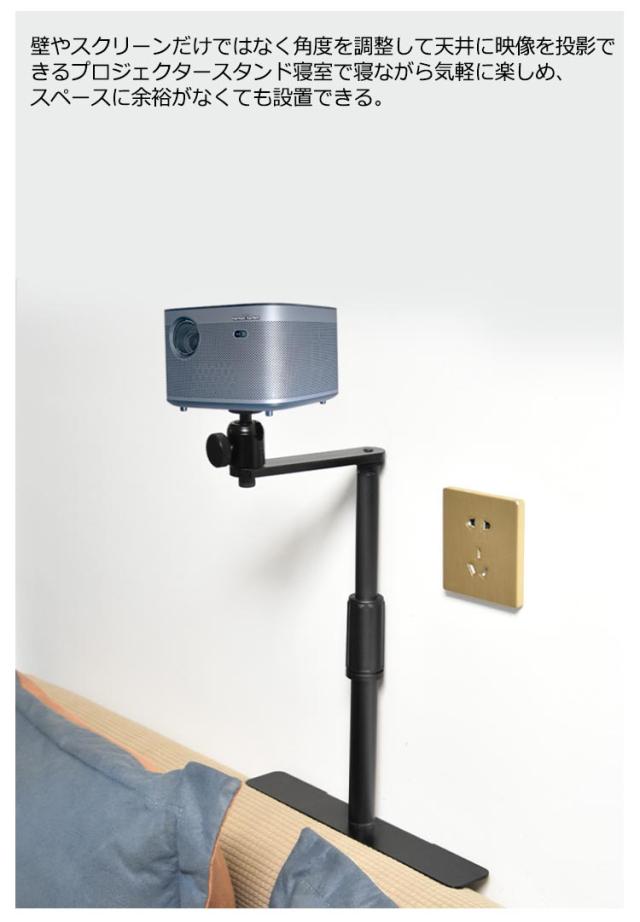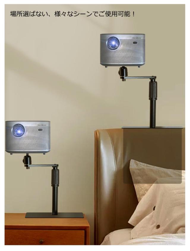 | 360°回転可能!伸縮式プロジェクタースタンド! 壁やスクリーンだけではなく角度を調整して天井に映像を投影できるプロジェクタースタンド寝室で寝ながら気軽に楽しめ、スペースに余裕がなくても設置できる。 プロジェクターをどこに設置しても違和感なく設置場所の自由度が高い 壁寄せ型はお邪魔にならずソファーの後方やベッドの後方に設置ができます 耐久カのある金属パーツ。 場所選ばない、様々なシーンでご使用可能! 隠せるプロジェクタースタンドだからインテリアに響かない。 雲台カーブデザイン、壁寄せ設置可能、省スペース。 プロジェクターを雲台の1/4ネジに取り付け、雲台の蝶ネジを反時計回りで締め、プロジェクターをお好みの角度まで調節します | |