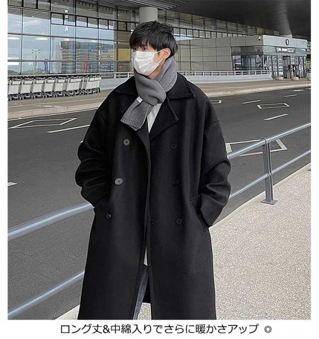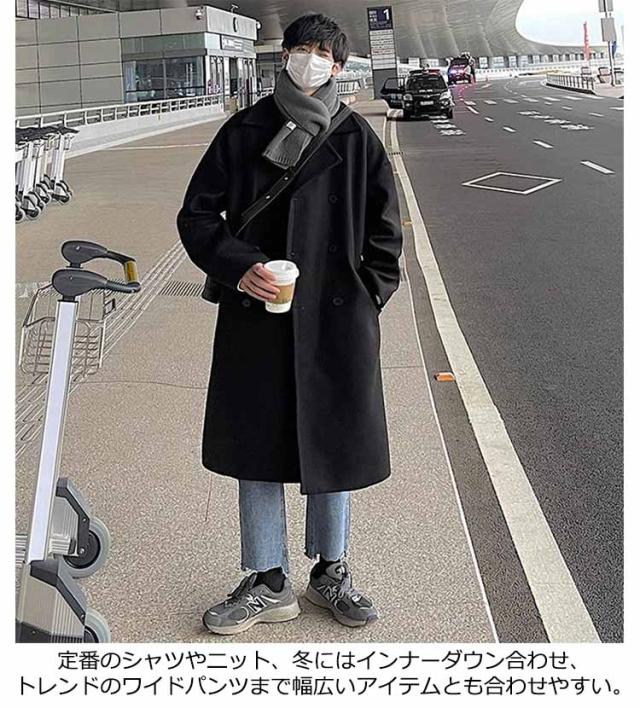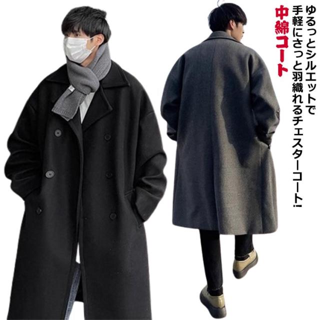 コート チェスターコート ステンカラーコート メンズ ロングコート 中綿コート 冬 ビジネスコート ロング丈 防寒 中綿 アウター ビジネスコート 通勤 冬服 秋服 冬 秋冬 膝丈 ウールコート ドロップショルダー オーバーサイズ 細身 スリム 暖かい 服 韓国 送料無料