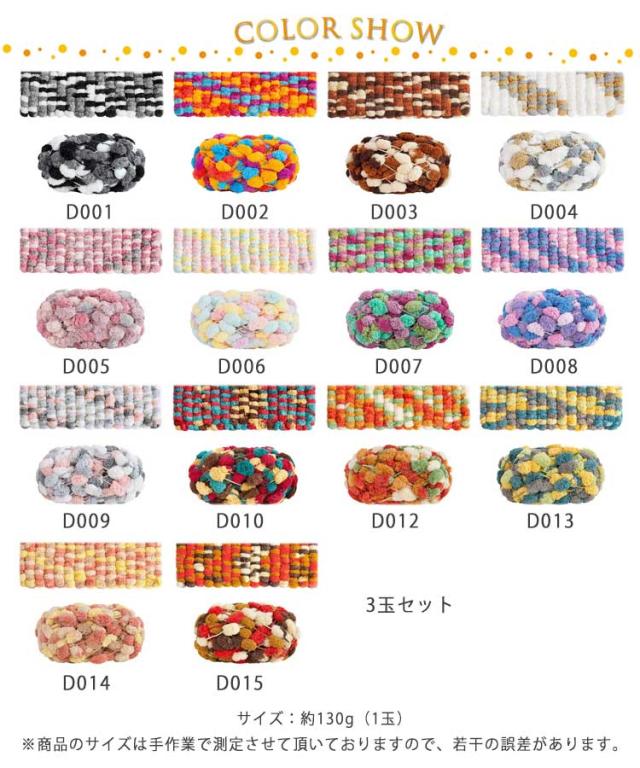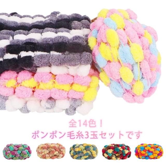 ファンシーヤーン ポンポン 毛糸 編み物 手芸 小物づくり 手編み 3玉セット カラフル 可愛い 太い 毛糸 かわいい 手作り 手芸 手仕事 クラフト 混色