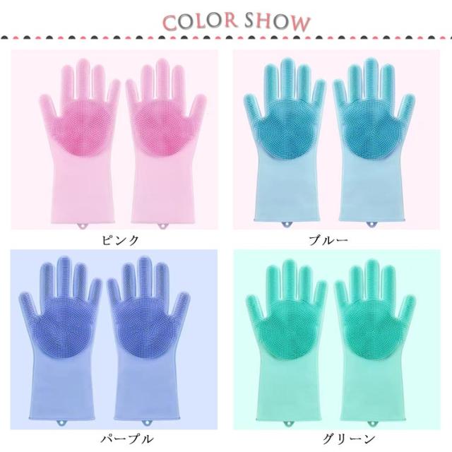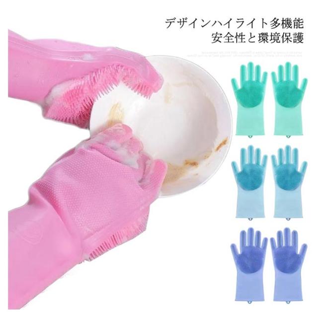キッチン手袋 ゴム手袋 シリコンブラシ手袋 シリコングローブ キッチン バスルーム トイレ掃除 ペットブラシ 泡立ちやすい シリコンブラシつき 多機能 滑り止め 収納便利 キッチン雑貨 お風呂掃除ブラシ ペットシャンプー 送料無料