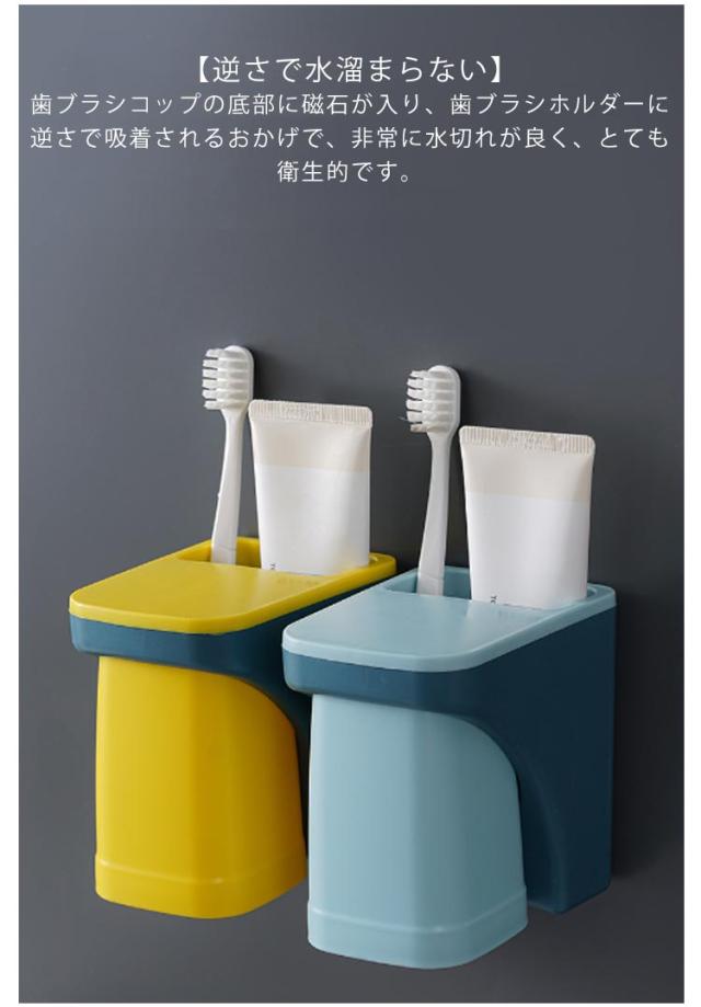 歯ブラシスタンド 歯ブラシホルダー コップスタンド 磁気吸着 歯ブラシ立て 壁掛け マグネット 収納便利 浮かせる収納 洗面台 工事不要 穴あけ不要 衛生的 水切り お洒落 シンプル 送料無料