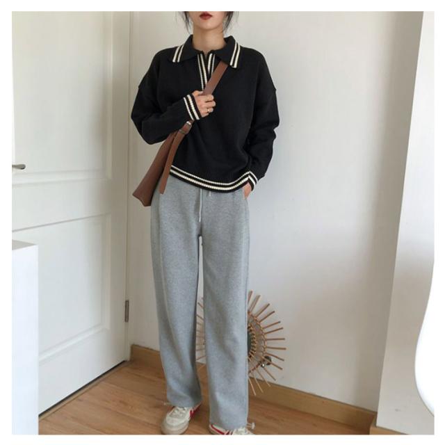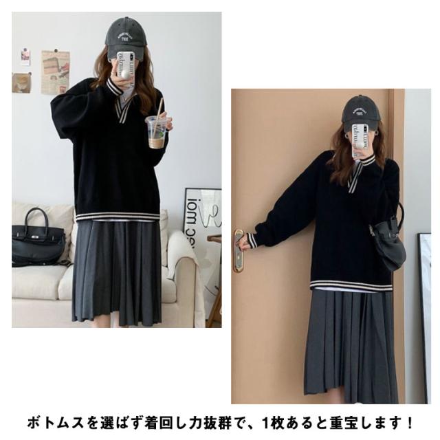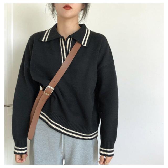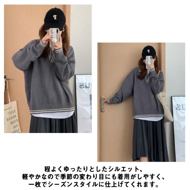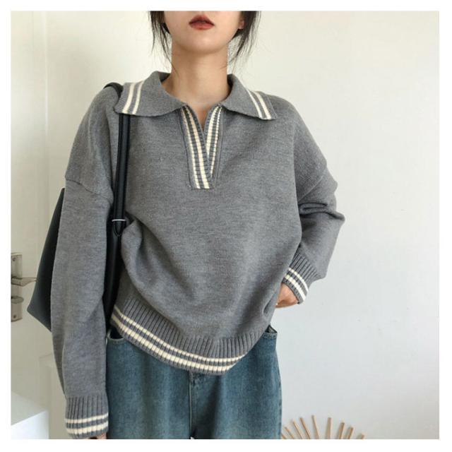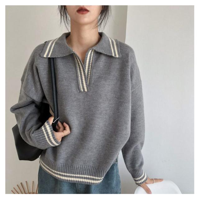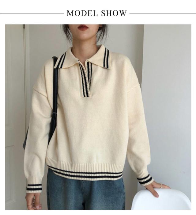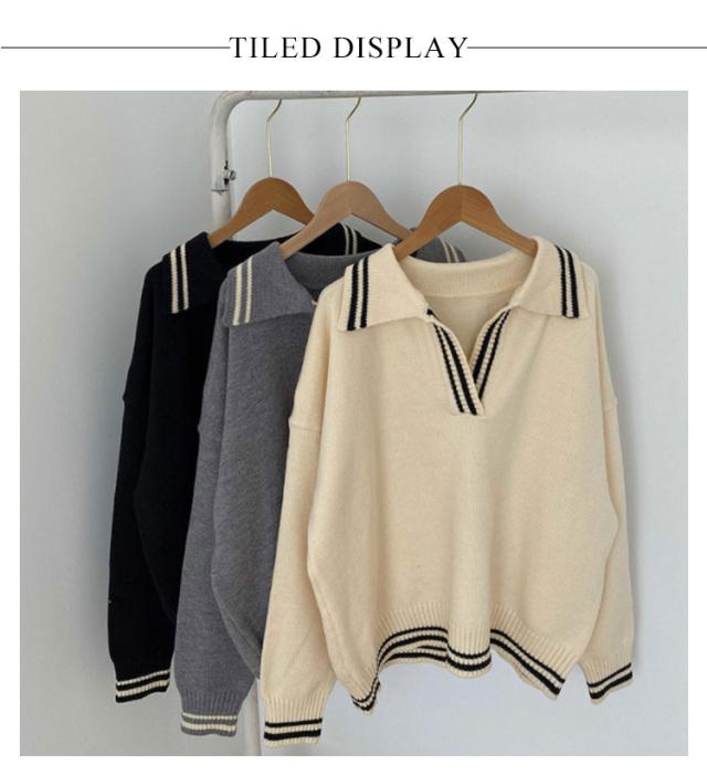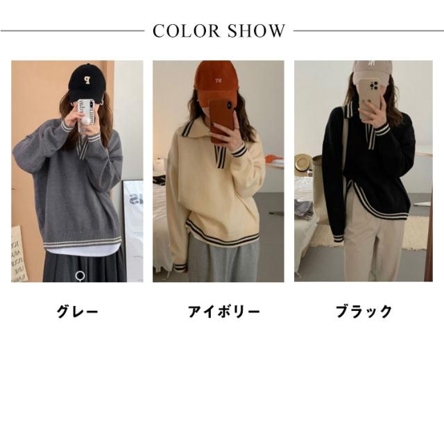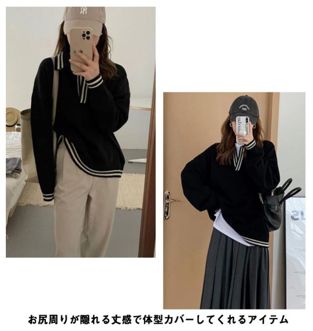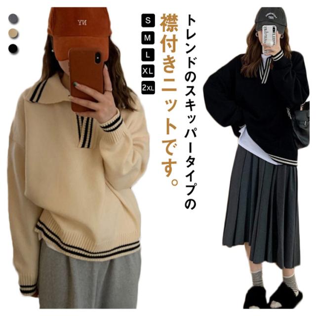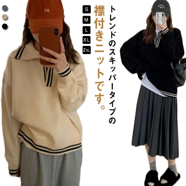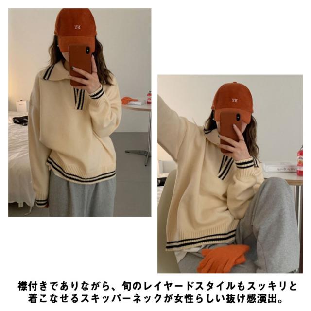 【送料無料】ニットプルオーバー 襟付き Vネック ポロニット レディース ニット プルオーバー スキッパー襟 セーラーカラー 長袖 トップス 春 秋 オーバーサイズ 薄手 ボリュームスリーブ 通勤 オフィス カジュアル
