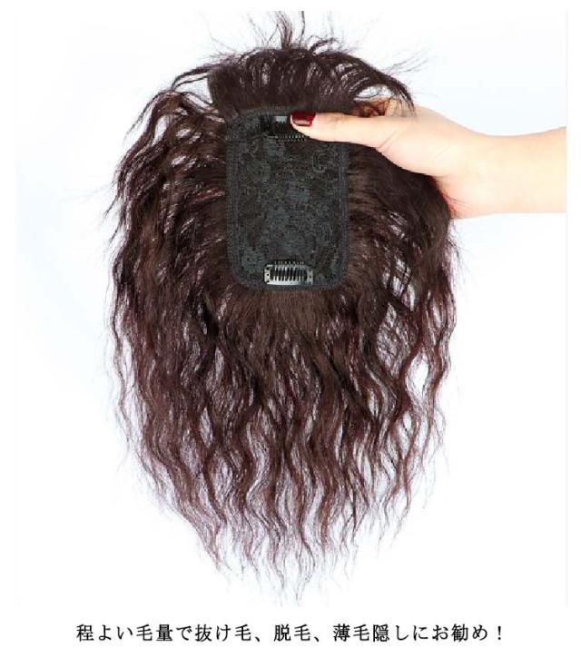 白髪隠し 部分ウィッグ ヘアピース 人毛100% トップカバー 頭頂部 つむじ付き 薄毛 抜け毛 ウェーブ カール 母の日 黒髪 ダークブラウン 円形脱毛症 増毛 ウィッグ エクステ 婦人用