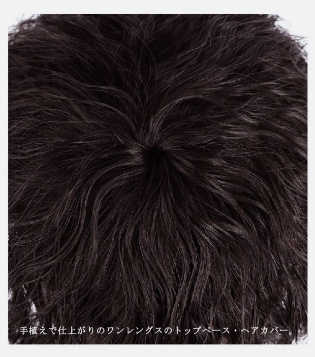 | 手触りも柔らかく、気になる部分をしっかりカバーしてくれます。 前後左右同じ長さのワンレングスタイプなので、どこからつけてもOK! 人工頭皮に毛を手植えしてるので、自毛のようにふんわり立ち上がり、見た目も自然! 程よい毛量で抜け毛、脱毛、薄毛隠しにお勧め! 手植えで仕上がりのワンレングスのトップペース・ヘアカバー。 毛量少なめの軽量タイプで、サッと着けられてアレンジもしやすい。 人毛なので、アイロン、コテ、ドライヤー、またパーマ、ブリーチ、スタイリング剤などの使用も可能です。 | |