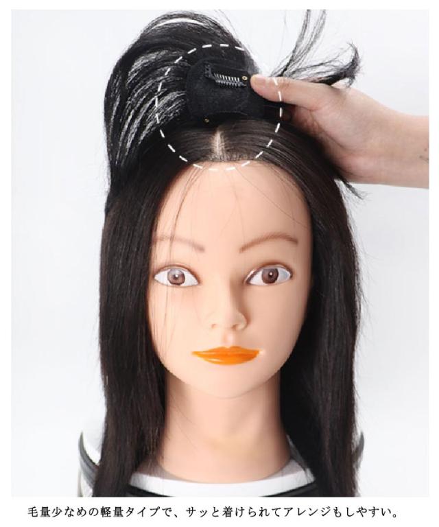 | 程よい毛量で抜け毛、脱毛、薄毛隠しにお勧め! 手植えで仕上がりのワンレングスのトップペース・ヘアカバー。 人工頭皮に毛を手植えしてるので、自毛のようにふんわり立ち上がり、見た目も自然! 前後左右同じ長さのワンレングスタイプなので、どこからつけてもOK! 毛量少なめの軽量タイプで、サッと着けられてアレンジもしやすい。 人毛なので、アイロン、コテ、ドライヤー、またパーマ、ブリーチ、スタイリング剤などの使用も可能です。 | |