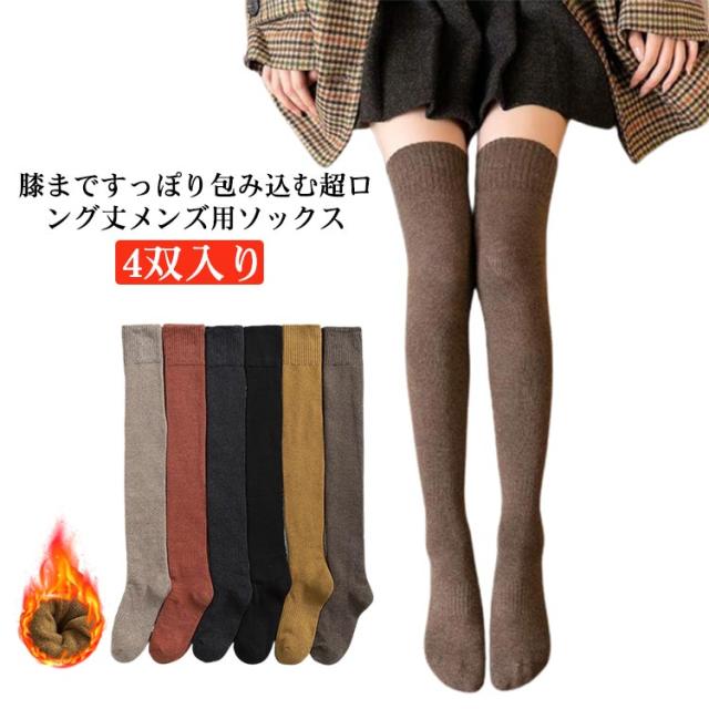 4双入り ハイソックス 靴下 レディース 裏パイル ニーハイソックス 厚手 防寒 冷え取り ロングソックス オーバーニーソックス 暖かい スポーツ 寒さ対策 裏起毛 あったか靴下 通勤 通学 アウトドア 保温性 冬 送料無料