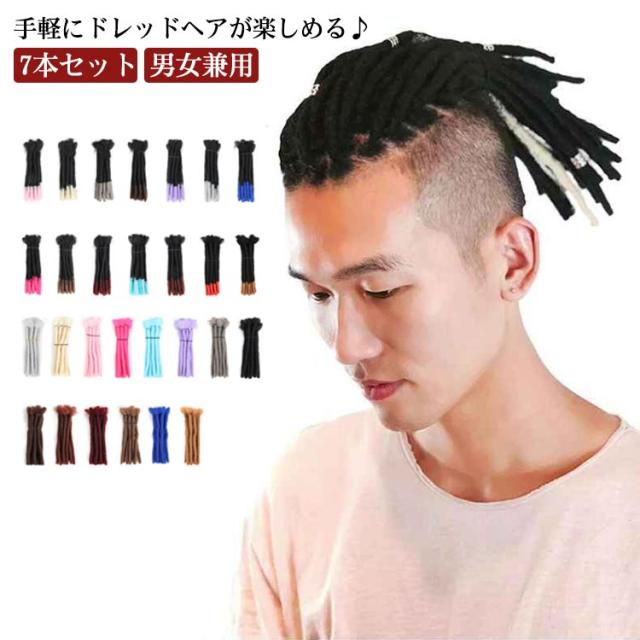 7本セット 送料無料 ドレッドヘア 毛束 ウィッグ ヘアアクセサリー レゲー風 カラー ポニー HIPHOP ダンス ヒップホップ つけ毛 メンズ レディース 男女兼用 アフリカ 髪型 大人 子供 仮装 変装 B系 ストリート系