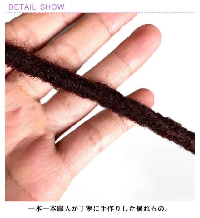 | 手軽にドレッドヘアが楽しめる♪ 地毛に取り付けて、クールでかっこいいドレッドヘアを楽しめる。 いつもと違う自分になってみるのも楽しいでしょう。 一本一本職人が丁寧に手作りした優れもの。 ヒップホップダンスやステージ、学園祭、ハロウィンコスプレなど様々なシーンで大活躍。 | |
