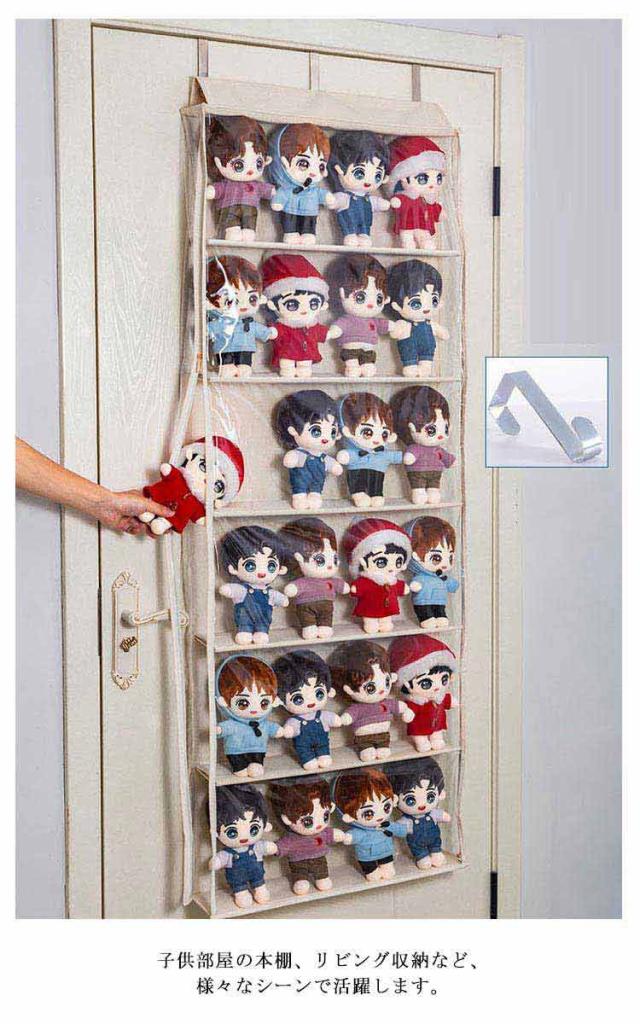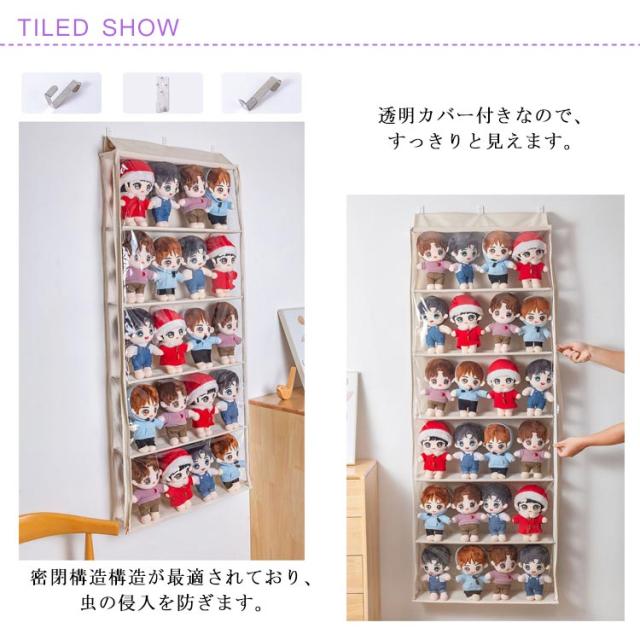 ぬいぐるみウォールポケット ディスプレイ コレクションケース 5段/6段 大容量 透明窓付き 壁掛け収納ポケット 吊り下げ収納 ぬいぐるみ 収納 見せる収納 小物 ドア掛け収納式ポケット