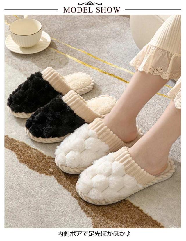 送料無料 ルームスリッパ 暖かい 室内履き レディース メンズ ルームシューズ もこもこ 暖か ふわふわ ボアスリッパ おしゃれ かわいい フェイクファー 冷え対策 防寒 滑り止め シンプル ペア 来客 室内 部屋 職場 オフィス 上履き
