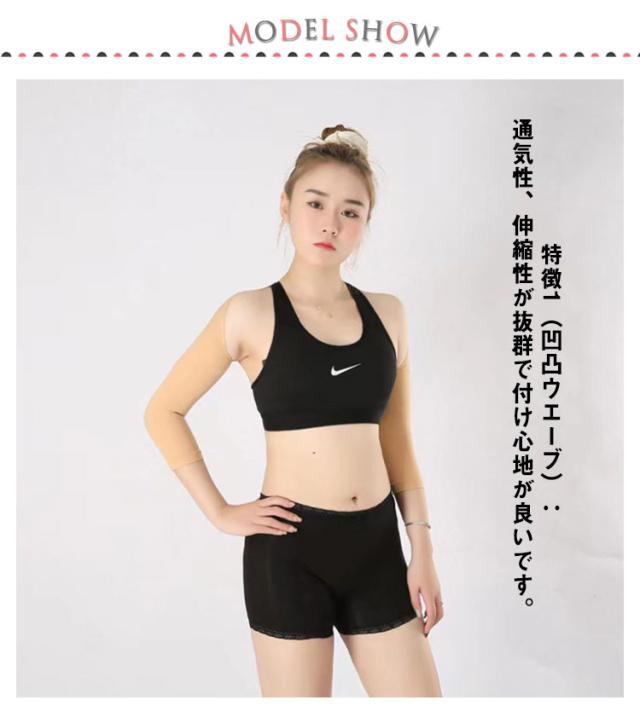 | 特徴1(凹凸ウエーブ):通気性、伸縮性が抜群で付け心地が良いです。 特徴2(着圧サポート):肘下から二の腕へ引き上げながらスッキリ引き締めます。 特徴3:(背中に強いパワーウエーブ):二の腕も意識させ姿勢をサポートします。 | |