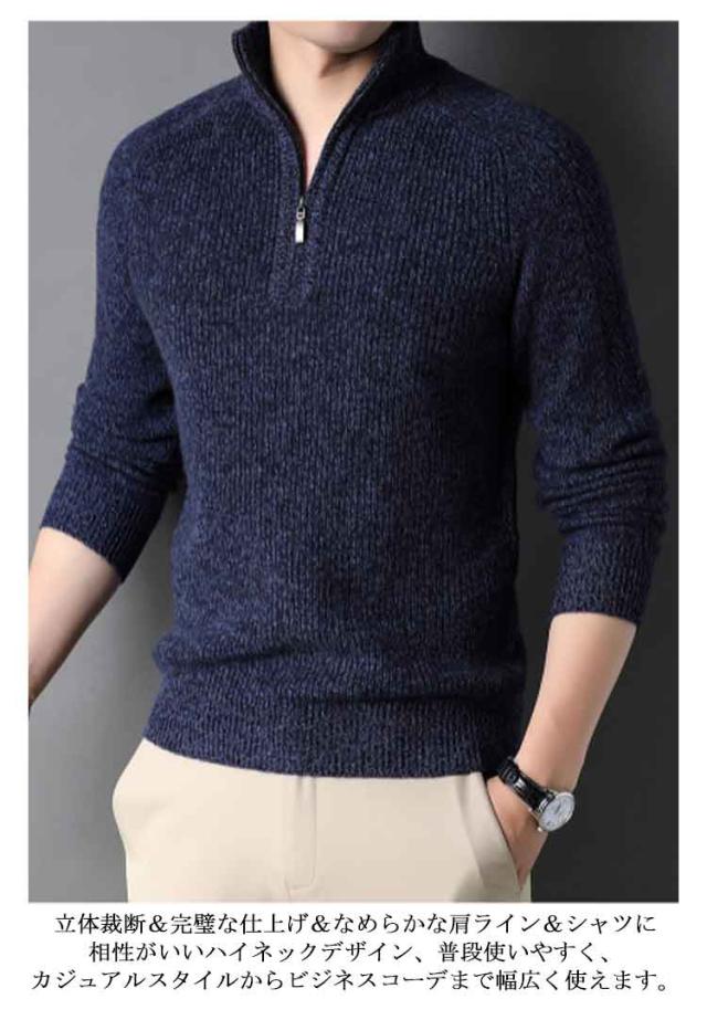 ウール セーター メンズ ハーフジップ ゴルフ ハーフジップニットセーター ウールニット ウールプルオーバー ゴルフウェア スタンドカラー メンズニット 厚手 暖かい 無地 ニットトップス ハイネック 春秋 冬 秋冬