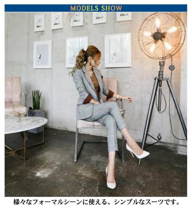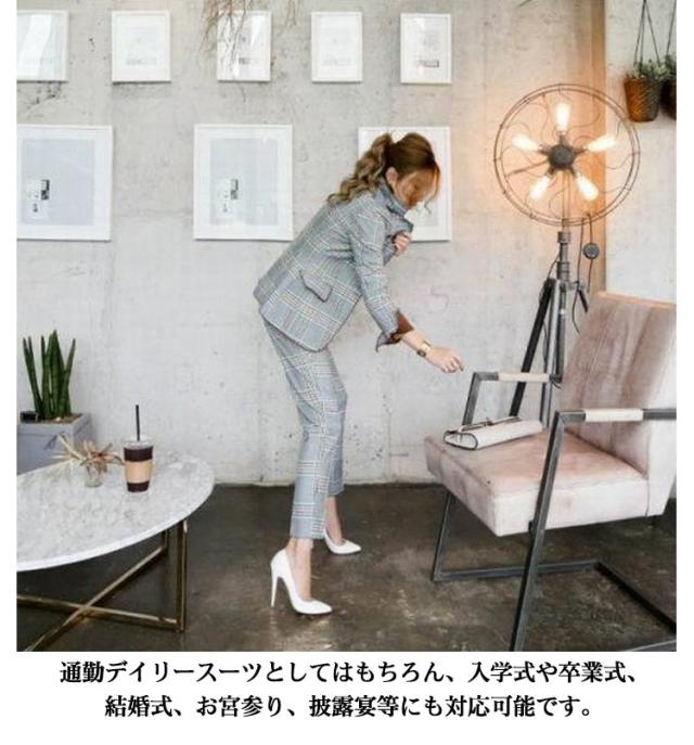 スーツ レディース ママスーツ チェック柄 セットアップ 卒業式 卒園式 スーツ テーラードジャケット 長袖 パンツ 上下 2点セット パンツスーツ フォーマルスーツ ビジネス 春夏秋冬 大きいサイズ 通勤 OL 入学式 入園式 セレモニー ストレッチ 洗える 送料無料