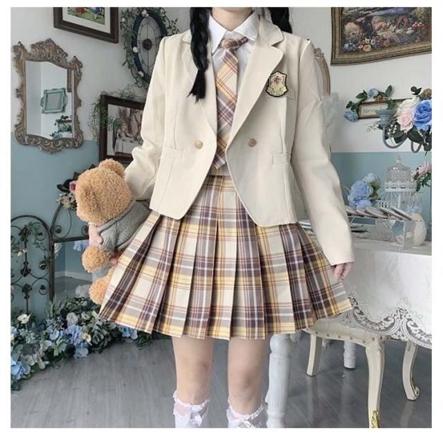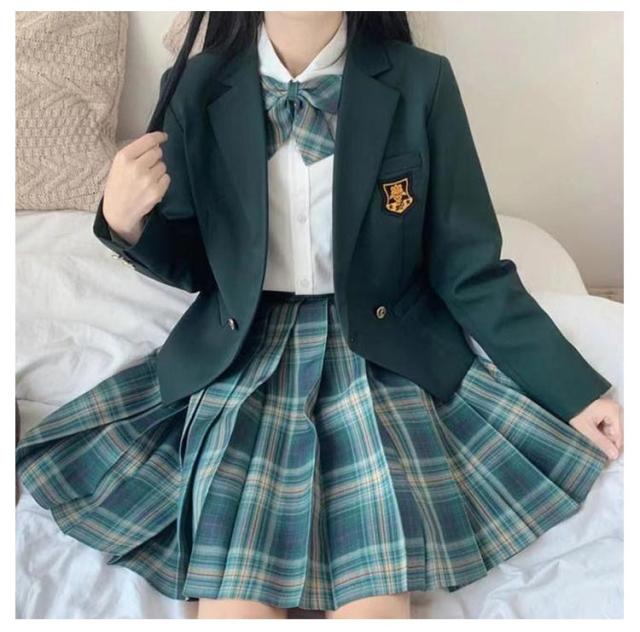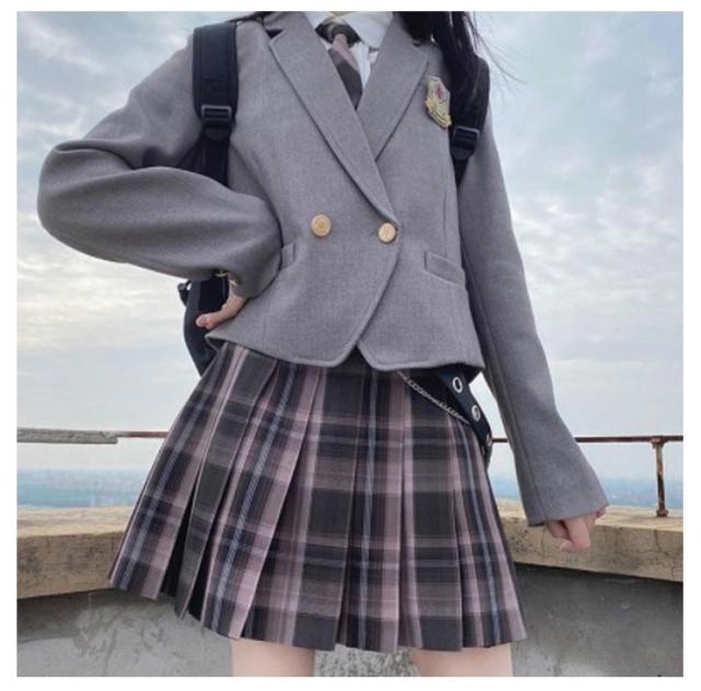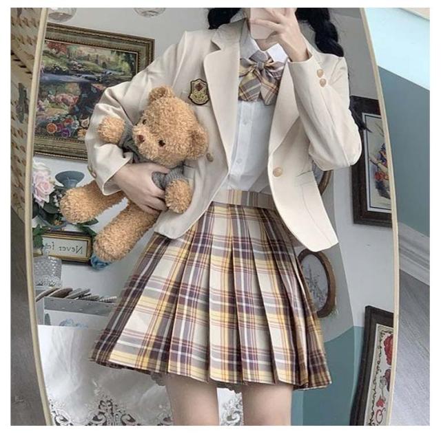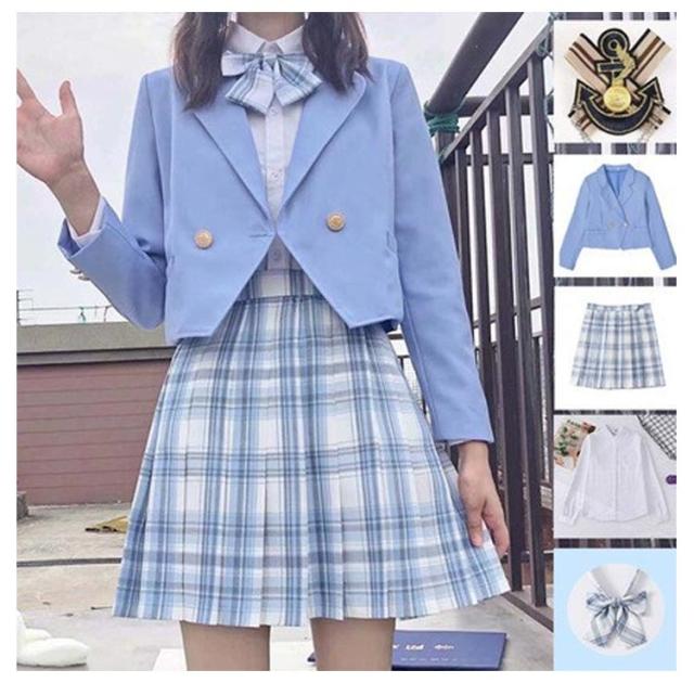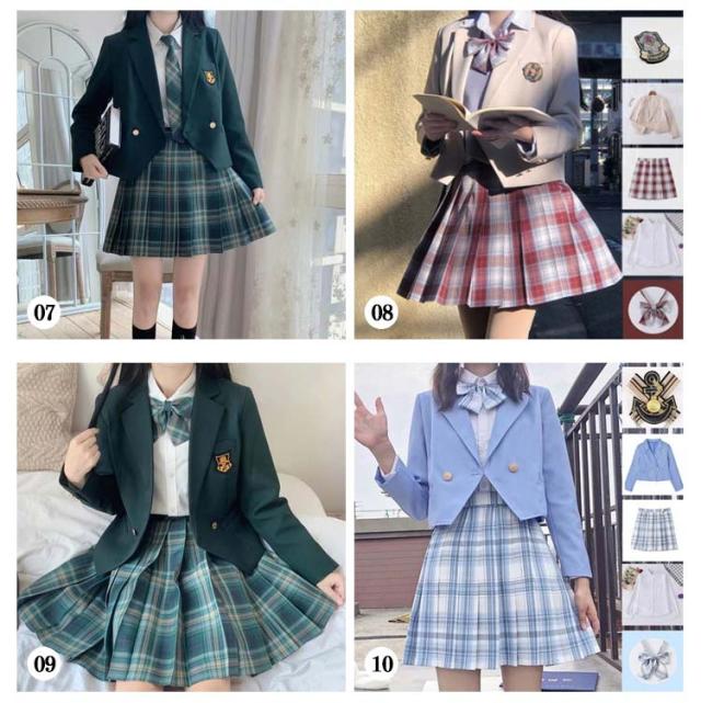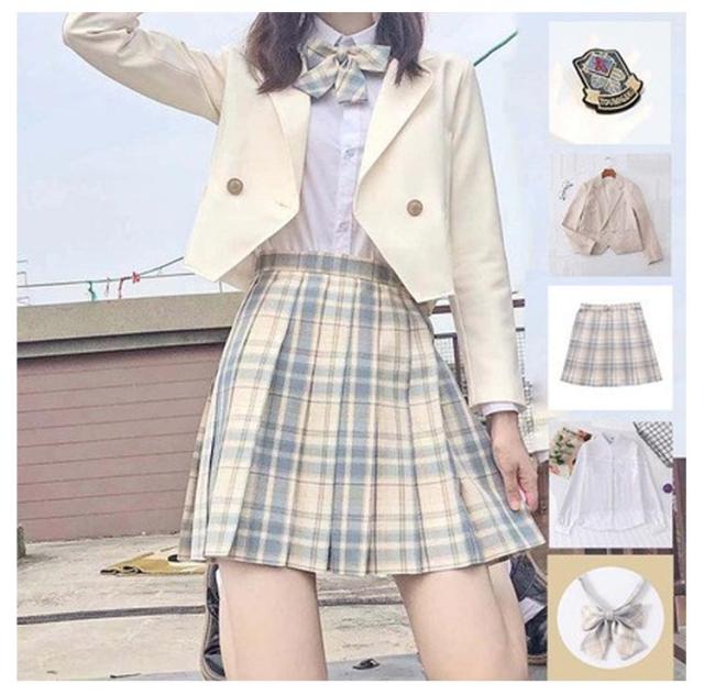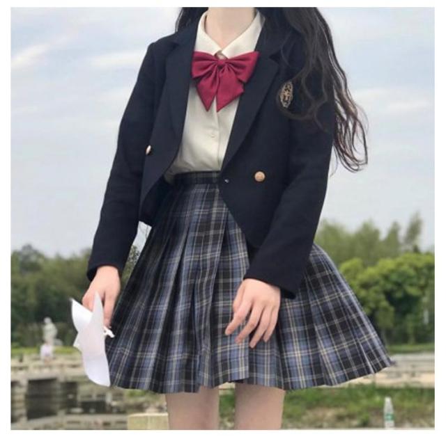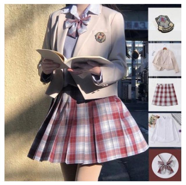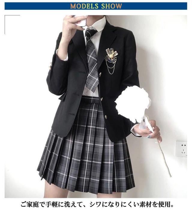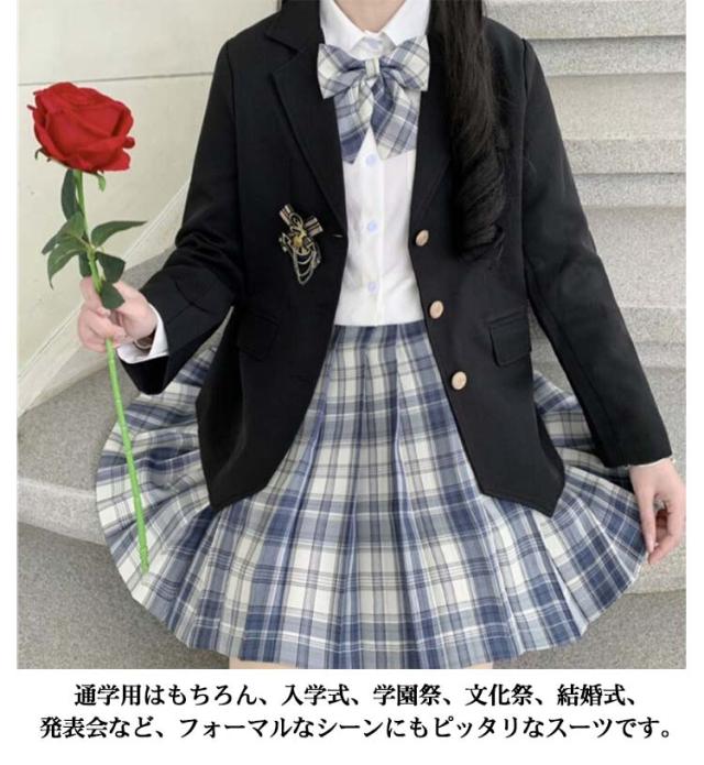 女子高生 制服 5点セット ブレザー スカート チェック柄 長袖シャツ JK服 スクール 制服 上下セット スカートスーツ 女の子 スーツ 中学生 高校生 学生服 コスプレ衣装 コスチューム 仮装 可愛い レディース フォーマル 文化祭 卒業式スーツ 学園祭 発表会 春 秋 冬