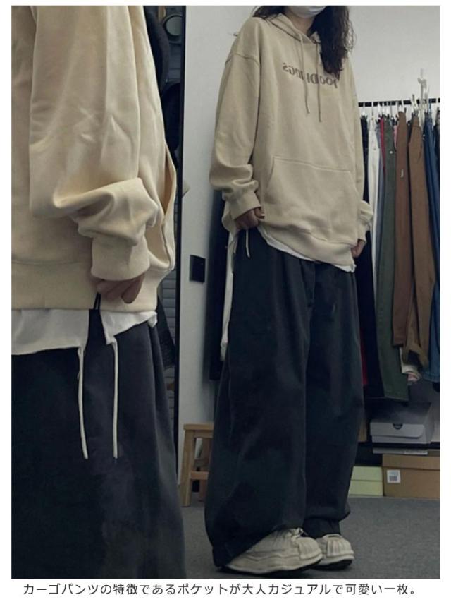 | ワイドなラインなので体型カバーにもなるカーゴパンツ ハイウエストにトップスをインすれば脚長効果もバツグン 太めに作られたシルエットは存在感抜群です カーゴパンツの特徴であるポケットが大人カジュアルで可愛い一枚。 シーズンを問わずに着用していただける着回し力抜群な優秀パンツです。 | |